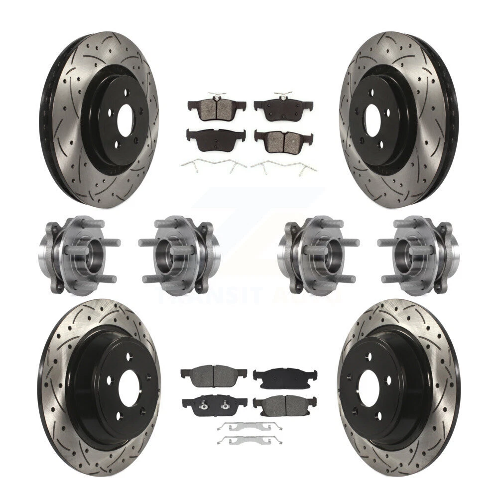 More details from seller Transit Auto Front Rear Hub Bearings Assembly Coated Disc Brake Rotors And Semi-Metallic Pads Kit (10Pc) KBB-129659 COMPATIBILITY This product only fits the following vehicles : 2017 Lincoln Continental AWD AND With 16mm Wheel Lugs 2018 Lincoln Continental AWD AND With 345mm Diameter Front Rotor 2020 Lincoln Continental AWD Your vehicle is not listed? Search in our store by entering your vehicle year make model and the position you are searching for in the form below. PRODUCT DESCRIPTION Included (10 pcs) 2 x Rear Wheel Bearing and Hub Assembly (Both Sides) 2 x Front Wheel Bearing and Hub Assembly (Both Sides) 2 x Front Coated Slotted Drilled Disc Brake Rotor (Both Sides) 1 x Front Semi-Metallic Disc Brake Pad Set (Hardware Included) 2 x Rear Coated Slotted Drilled Disc Brake Rotor (Both Sides) 1 x Rear Semi-Metallic Disc Brake Pad Set (Hardware Included) Kugel Kugel Bearings use premium quality Chevron Grade 2 molybdenum grease Exclusive multi-lip seals are made with Nitrile Rubber (NBR) which can successfully function at temperatures of-40°C while resisting contaminants from fluids and debris Manufactured with CNC tooling, automated grinding and assembly lines for increased consistency Inner rings are made of AISI 52100 alloy (high carbon) steel, low-alloy chromium steel, which meets ASTM International quality standards Core made of high tensile, heat-treatable AISI 1065 high-carbon steel Assembly is precision processed and pre-coated with anti-corrosion lubricant, it not only makes lubricating the bearings easy, but also helps prevent corrosion of the hub Part Reference Numbers : WH513394 WH513443 MB40329 513443 BR931101 HA590611 TRB-513394 513394 Interchanges: N/A, WH513394, WH513443, MB40329, 513443, BR931101, HA590611, TRB-513394, 513394, N/A, WH513394, WH513443, MB40329, 513443, BR931101, HA590611, TRB-513394, 513394 DS-One Make sure to buy two (2)! (One for left side and one for right side) Engineered with Carbon-Enhanced PowerCast™ (G11H18/G3000) iron castings to achieve an unmatched power and braking performance (strength, grip, stability) Exclusive DS1™ Bi-Directional Drilled and Slotted for universal left or right installation Precision Cross-Drilled and Slotted for maximum cooling and heat dissipation Electrophoretic PowerShield™ provides 360° of anti-corrosion protection on 100% of the non-braking rotor surface 100% Precision Spin and Mill-Balanced for smoother stopping and zero vibration at any speed Cross-Hatched smooth surface to improve the pad's ability to grip the rotor surface, especially during initial brake applications or in wet conditions Tested for maximum tolerance to voluminous amount of constant thermal cycles Packed in a Vapor Corrosion Inhibitor (VCI) bag, it eliminates the need for an oil coating and reduces prep time Best matched with CMX, TEC, SIM or Positive Plus brake pads Part Reference Numbers : AC85235 AR85235 CR85235 PR85235 2164570 YH539672C YH539672 120.61120 121.61120 BR901424 54193 2488821801 488821801 7488821801 901424 940903 640006 681995 AFO1037 BFO1037 BD180689E BD180689 New in Box, Ready to Install, No Modifications Required Interchanges: AC85235, AR85235, CR85235, PR85235, 2164570, YH539672C, YH539672, 120.61120, 121.61120, BR901424, 54193, 2488821801, 488821801, 7488821801, 901424, 940903, 640006, 681995, AFO1037, BFO1037, BD180689E, BD180689, SEE AC85645, SEE AR85645, SEE CR85645, SEE PR85645, 2164801, YH540113C, YH540113, 120.61113, 121.61113, BR901426, 54194, 2488812107, 488812107, 7488812107, 901426, 940891, 640007, 682151, AFO1036, BFO1036, DS8157, G8157, TQ8157, BD180699E, BD180699 SIM SIM Exclusive low-resin Semi-Metallic formula eliminates brake fade and glazing for optimal braking power High density friction material to ensure a long pad life and excellent stopping power Premium shims for provides increased strength and insulation against noise Precise laser-cut channel cut provides a superior thermal stability and prevent overheating Improved new technology provides stable friction consistency, ensuring better braking performance Chamfered like OE pads for maximum pad retention and to prevent edge shifting Scorched for almost no break-in process required and raised initial cold effectiveness Premium Stainless-Steel hardware included (when required by the application) Post-cured, high temperature, thermo-processed pads means no break-in required Manufactured in ISO-Certified Installations and without asbestos Part Reference Numbers : 9053 SG9053AX SS9053AX AD9053A D1818A 1818A Interchanges: 9053, SG9053AX, SS9053AX, AD9053A, D1818A, 1818A, 8893, SG8893X, PF8893X, AD8893, SS8893X, D1665, 1665 FITMENTS To obtain this guarantee Make sure that you vehicle is found in the eBay Motor compability list above or in our compatibility summary. If you wish further validation, simply copy and paste your vehicle information along with your VIN into the order note. We will double-check it before sending your order. We assume all responsibility for the fitment information of our products. SAFETY Additional information We follow the guidelines set out by Friction Material Standards Institute (FMSI) to ensure the safety of our customers. This means that if the FMSI says a pad number should have no slot or should not be chamfered based on it's size, we will follow their guidelines. Our customer's safety is our highest priority. All our products follow the OE specifications: there is no modification needed for installation. SHIPPING Please note that we do not deliver to: Alaska, Puerto Rico, Hawaii, Guam, US Virgin Islands, neither P.O. Boxes, APO, FPO *3 PM Eastern time. Monday - Friday, order received the weekend will be shipped on Monday FAQ Do you need any additional information about my vehicle? If you see your vehicle in the fitment list, you don't need to send us additional information, the parts will fit your vehicle, we guarantee it. If you are not sure and would like to double check, send us a message with