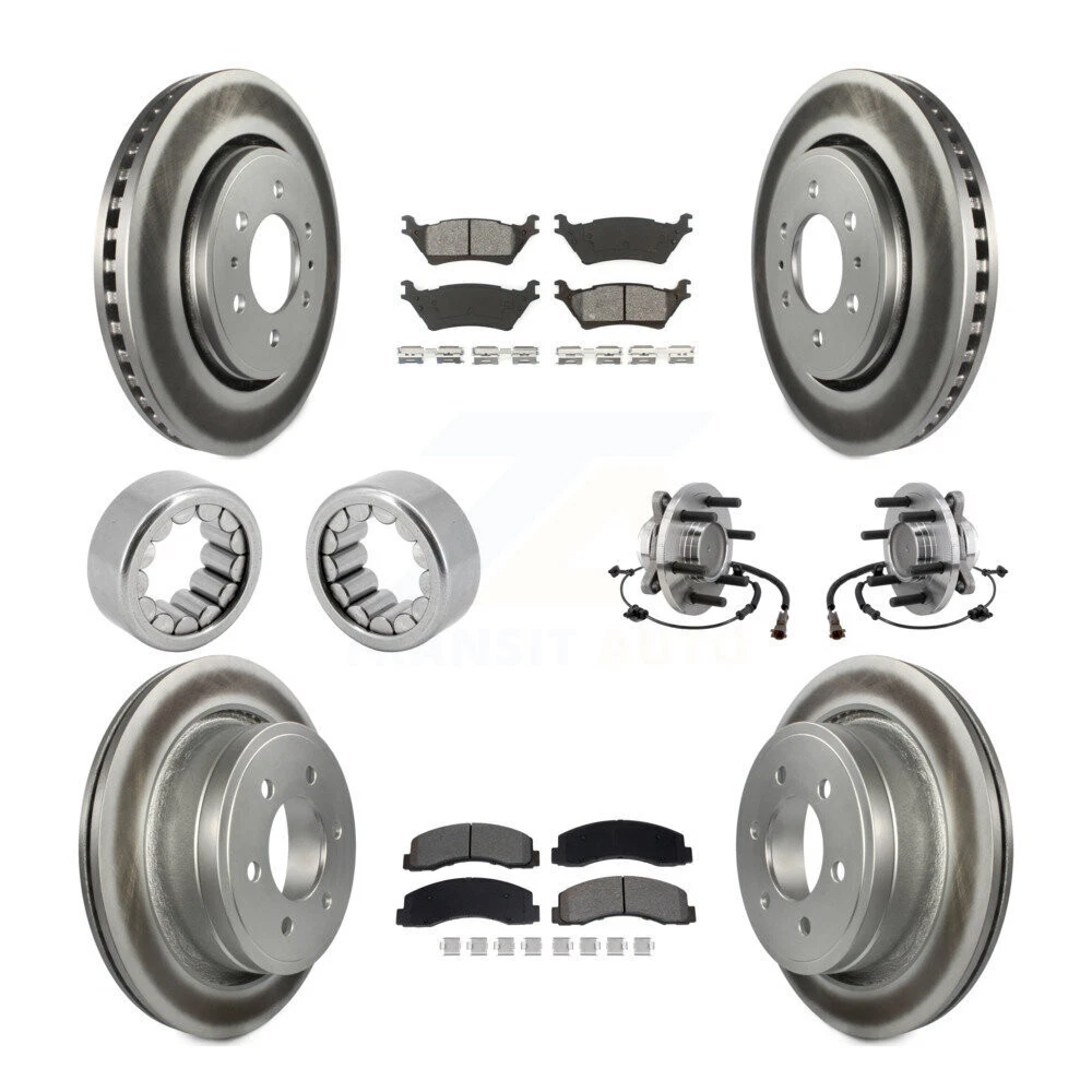 More details from seller Transit Auto Front Rear Wheel Hub Bearings Assembly Coated Disc Brake Rotors And Semi-Metallic Pads Shoes Kit (10Pc) KBB-129778 COMPATIBILITY This product only fits the following vehicles : 2018 Ford F-150 RWD AND With Manual Parking Brake Your vehicle is not listed? Search in our store by entering your vehicle year make model and the position you are searching for in the form below. PRODUCT DESCRIPTION Included (10 pcs) 2 x Rear Wheel Bearing (Both Sides) 2 x Front Wheel Bearing and Hub Assembly (Both Sides) 2 x Front Coated Disc Brake Rotor (Both Sides) 1 x Front Semi-Metallic Disc Brake Pad Set (Hardware Included) 2 x Rear Coated Disc Brake Rotor (Both Sides) 1 x Rear Semi-Metallic Disc Brake Pad Set (Hardware Included) Kit variants Bearing / Semi-Metallic Pads / CMX Ceramic Pads / Wheel Bearing and Hub Assembly (KBB-129770) Bearing / Premium Ceramic Pads / Drilled Sloted Coated Disc Rotor / Wheel Bearing and Hub Assembly (KBB-129817) Bearing / Semi-Metallic Pads / Drilled Sloted Coated Disc Rotor / Wheel Bearing and Hub Assembly (KBB-129823) Bearing / Ceramic Pads / G-Coated Rotors / Wheel Bearing and Hub Assembly (KBB-129746) Bearing / Ceramic Pads / CMX Ceramic Pads / Wheel Bearing and Hub Assembly (KBB-129750) Bearing / Premium Semi-Metallic Pads / G-Coated Rotors / Wheel Bearing and Hub Assembly (KBB-129754) Bearing / Premium Ceramic Pads / G-Coated Rotors / Wheel Bearing and Hub Assembly (KBB-129768) Bearing / Premium Semi-Metallic Pads / CMX Ceramic Pads / Wheel Bearing and Hub Assembly (KBB-129758) Bearing / Ceramic Pads / Drilled Sloted Coated Disc Rotor / Wheel Bearing and Hub Assembly (KBB-129807) Bearing / Premium Semi-Metallic Pads / Drilled Sloted Coated Disc Rotor / Wheel Bearing and Hub Assembly (KBB-129813) Bearing / Premium Ceramic Pads / CMX Ceramic Pads / Wheel Bearing and Hub Assembly (KBB-129762) Kugel Core made of High-Carbon AISI 52100 Chromium Alloy Steel features higher wear resistance, fatigue strength and steel hardness Premium quality MolyPro™ NLGI Grade 2 Molybdenum Grease (MoS2) to minimize wear and reduce friction providing longer lasting performance Exclusive multi-lip seals are made with ProSeal™ Nitrile Rubber (NBR) which can successfully function at high delta of temperatures while retaining its flexibility and sealing performance Inner rings are made of Case-Hardened Steel for improved resistance to surface wear and contact fatigue Thickness and metallurgy electronically validated for manufacturing consistency SAE J1714, J2525 and J2535 validated for OEM load-carrying capacity, durability, and performance characteristics Part Reference Numbers : WE60762 CBR-A36 R-1561-TV R1561-TV R1561TV Interchanges: WE60762, CBR-A36, N/A, R-1561-TV, R1561-TV, R1561TV Kugel Core made of High-Carbon AISI 52100 Chromium Alloy Steel features higher wear resistance, fatigue strength and steel hardness Premium quality MolyPro™ NLGI Grade 2 Molybdenum Grease (MoS2) to minimize wear and reduce friction providing longer lasting performance Exclusive multi-lip seals are made with ProSeal™ Nitrile Rubber (NBR) which can successfully function at high delta of temperatures while retaining its flexibility and sealing performance Inner rings are made of Case-Hardened Steel for improved resistance to surface wear and contact fatigue Thickness and metallurgy electronically validated for manufacturing consistency SAE J1714, J2525 and J2535 validated for OEM load-carrying capacity, durability, and performance characteristics Bearing already mounted and secured on the assembly to required OE torque specification for easier and faster installation Coated wheel studs resist corrosion and rust for easier removal and proper torquing Professional-Grade ABS sensors and clips with AccuPro™ technology included (when required by the application) Part Reference Numbers : WH515176 MB40335 515176 JL1Z1104D BR931149 HA590794 HA590796 TRB-515176 Interchanges: N/A, WH515176, MB40335, 515176, JL1Z1104D, BR931149, HA590794, HA590796, TRB-515176 Genius Make sure to buy two (2)! (One for left side and one for right side) Engineered with with Carbon-Enhanced G-Cast™ (G11H18/G3000) iron castings to achieve an optimal braking performance (strength, stability, durability) Exclusive G-Coat™ double-layer (8µm) protective coating provides rust protection on 100% of the non-braking surface 100% Precision Spin and Mill-Balanced for smoother stopping and zero vibration at any speed Cross-Hatched smooth surface to improve the pad's ability to grip the rotor surface, especially during initial brake applications or in wet conditions Double disc ground finish eliminates lateral run-out and DTV (disk thickness variation) issues on the rotor and improves pad-rotor bed-in Tested for maximum tolerance to voluminous amount of constant thermal cycles CNC-Machined to the tightest tolerances to guarantee manufacturing precision and accuracy Best matched with CMX, TEC, SIM or Positive Plus brake pads Packed in a Vapor Corrosion Inhibitor (VCI) bag, it eliminates the need for an oil coating and reduces prep time Part Reference Numbers : AC54153 AG54153 CR54153 PR54153 54153 YH145698C YH145698 120.65119 121.65119 BR900368 BR900846 54233 248880508 48880508 748880508 900846 EC54153 680508 BD126433E BD126433 New in Box, Ready to Install, No Modifications Required Interchanges: AC54153, AG54153, CR54153, PR54153, 54153, YH145698C, YH145698, 120.65119, 121.65119, BR900368, BR900846, 54233, 248880508, 48880508, 748880508, 900846, EC54153, 680508, BD126433E, BD126433, AC85585, AR85585, CR85585, PR85585, 54186, YH421758C, YH421758, 120.65135, 121.65135, BR901114, 54454, 2488821373, 488821373, 7488821373, 901114, EC54186, 680976, BD180511E, BD180511 SIM SIM Exclusive low-resin Semi-Metallic formula eliminates brake fade and glazing for optimal braking power High density friction material to ensure a long pad life and excellent stopping power Premium shims for provides increased strength and insu