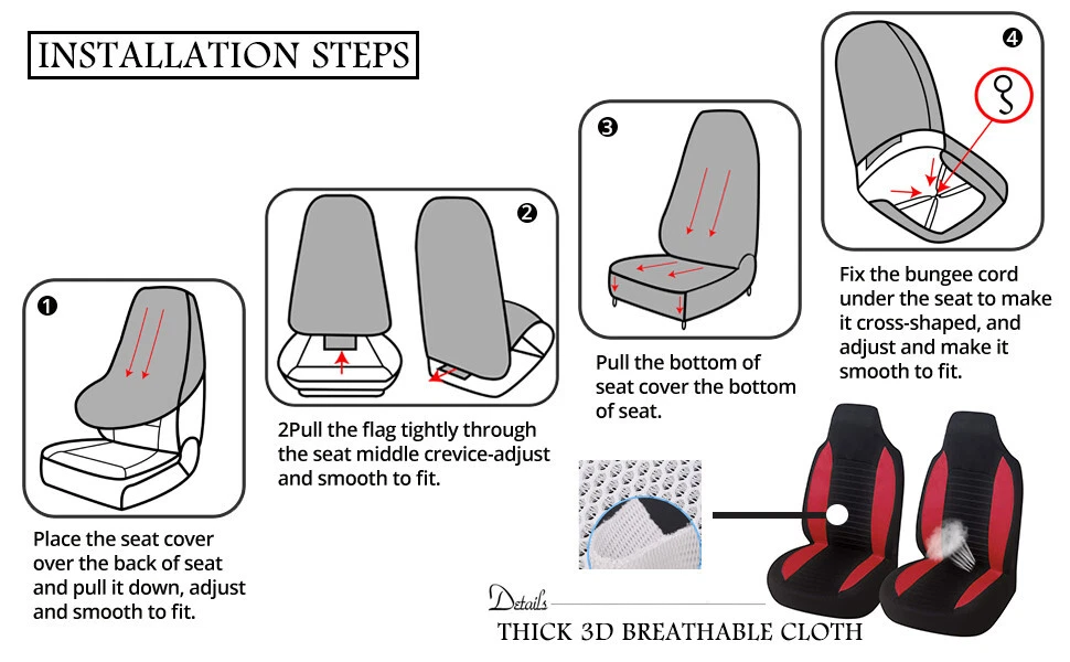 Home Payment Shipping About us Contact us Store Categories Store Categories Other Details High Back Bucket Seat Cover Four Seasons Universal Integrated Covers Car Front Seat Protector Covers For Cars Trucks SUV Product name:High Back Bucket Seat Cover Applicable Season:Four Seasons Material Type:Polyester Position:Front Colour:Gray Security Design:AIRBAG COMPATIBLE USE Package Included : 2x Front Seats Covers Description Comfortable Material: Polyester fabric, breathable and soft material keep hip and back comfortable in long time use Easy To Install And Remove: Elastic strap with hooks on the bottom of the seat covers.(Not suitable for seats with built-in seat belts, but a small cut can be cut to allow the seat belts to pass.) Security Design: airbag compatible use.Perfectly fit for most of vehicles with the reserved opening holes. The special stitching design allows the side airbag to deploy when it encounters a huge impact. Universal fit: General-purpose front seat cover, mainly suitable for high-back chairs, small and medium-sized civilian cars. Note: Fit most car and SUV bucket style seats; Please Check Dimensions Chart before Installation. Shipping Policy Payment Method Returns Policy Shipping Policy Payment Method Returns Policy Home Payment Shipping About us Contact us Home Payment Shipping About us Contact us Store Categories Store Categories Other Details High Back Bucket Seat Cover Four Seasons Universal Integrated Covers Car Front Seat Protector Covers For Cars Trucks SUV Product name:High Back Bucket Seat Cover Applicable Season:Four Seasons Material Type:Polyester Position:Front Colour:Gray Security Design:AIRBAG COMPATIBLE USE Package Included : 2x Front Seats Covers Description Comfortable Material: Polyester fabric, breathable and soft material keep hip and back comfortable in long time use Easy To Install And Remove: Elastic strap with hooks on the bottom of the seat covers.(Not suitable for seats with built-in seat belts, but a small cut can be cut to allow the seat belts to pass.) Security Design: airbag compatible use.Perfectly fit for most of vehicles with the reserved opening holes. The special stitching design allows the side airbag to deploy when it encounters a huge impact. Universal fit: General-purpose front seat cover, mainly suitable for high-back chairs, small and medium-sized civilian cars. Note: Fit most car and SUV bucket style seats; Please Check Dimensions Chart before Installation. Shipping Policy Payment Method Returns Policy Shipping Policy All items will be checked before packing. All items are new and of high quality. Item will be shipped within 1 business days upon receipt of payment, excluding weekends and public holidays. If to USA,we will ship your order by USPS,it will take about 2-6 working days to you,and you can track it on line. If to other country,we will ship your order by China Post or Singapore Registered Air Mail,it will take about 14-21 working days to you,you aslo can track it on line. Delivery time is about 14-28 business days and it may take up to 8 weeks. Payment Method We accept payment by PayPal ! Payment should be completed within 5 days after buyer places the order,or else an unpaid case will be opened in order to cancel the transaction. If you can not pay in time, please contact us. e-check from PayPal will only be processed once the payment clears. All of the items will be shipped to buyer's EBAY address,please confirm your address on Ebay before you buy.Your order will be usually shipped out the same or next business days once the payment is made and cleared. Returns Policy 30-day Warranty with Exchange for defective, malfunctioned, incorrect or parts-missing items. Please notify us and return the item with all parts and accessories packed and marked "FOR EXCHANGE" within 14 days of receipt. If defective, malfunctioned or parts-missing items are no longer available, a refund may be issued. Home Payment Shipping About us Contact us
