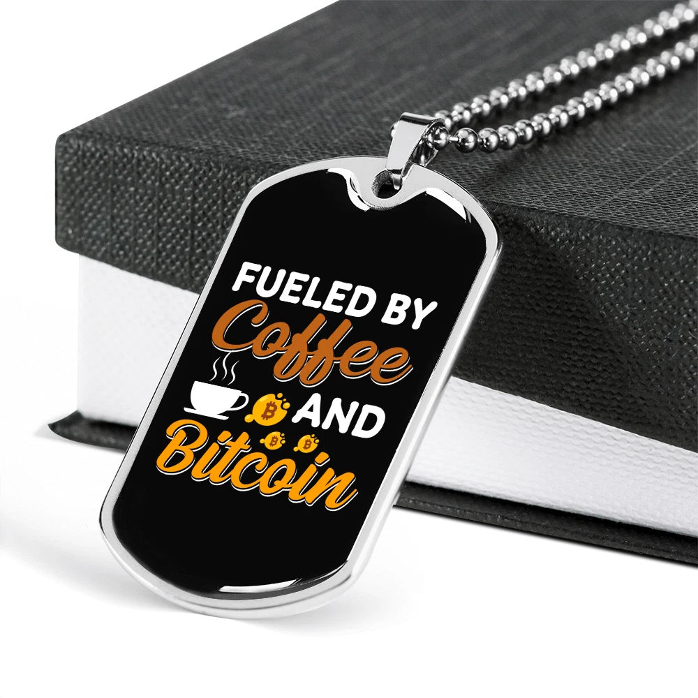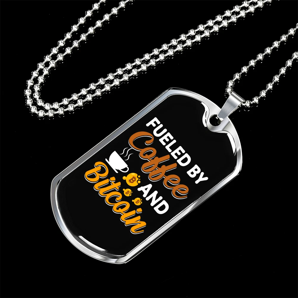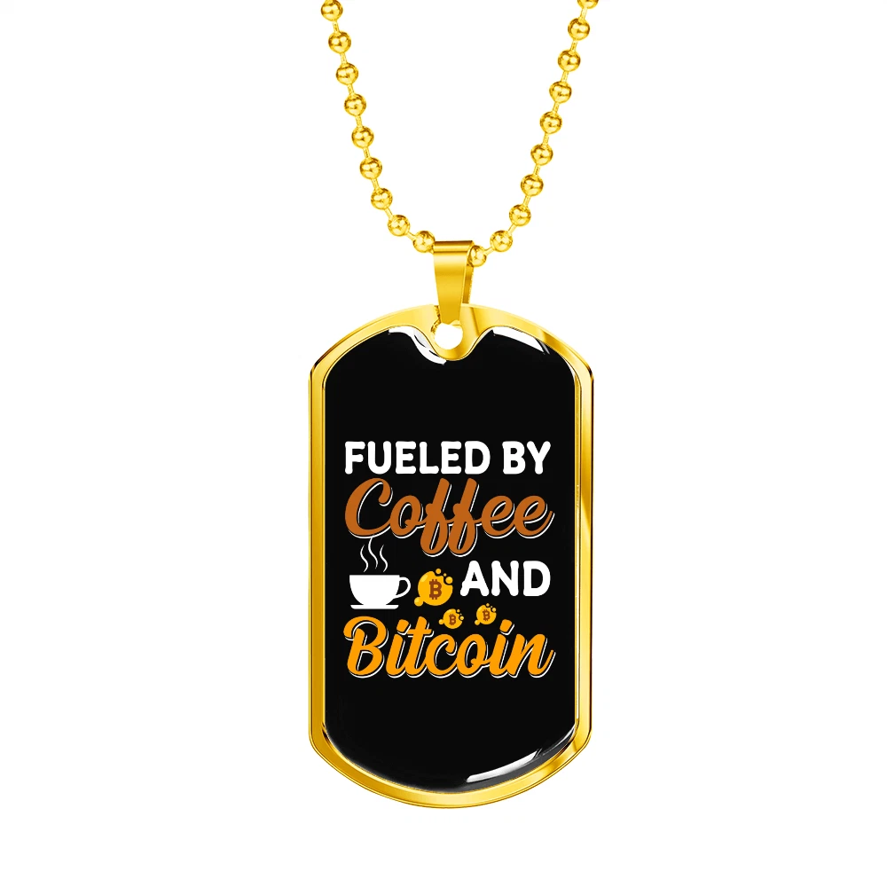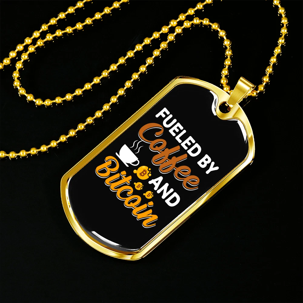 Fueled by Coffee & Necklace Stainless Steel or 18k Gold Dog Tag