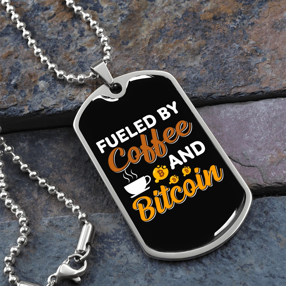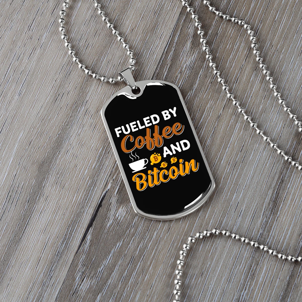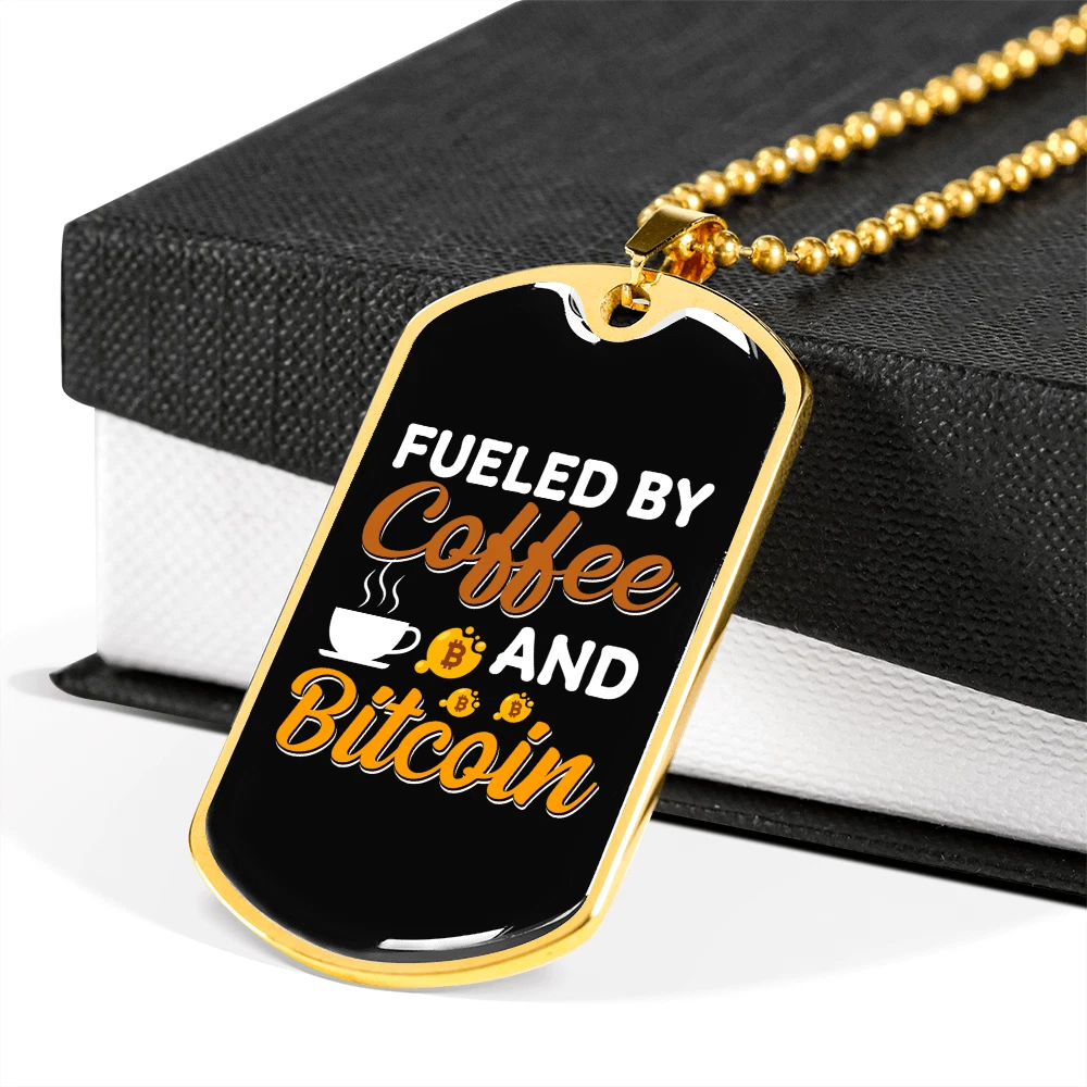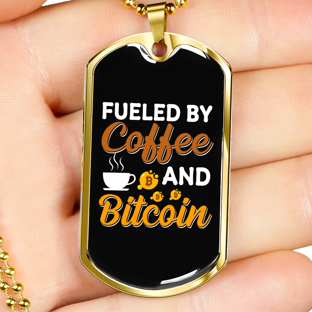 Fueled by Coffee & Necklace Stainless Steel or 18k Gold Dog Tag