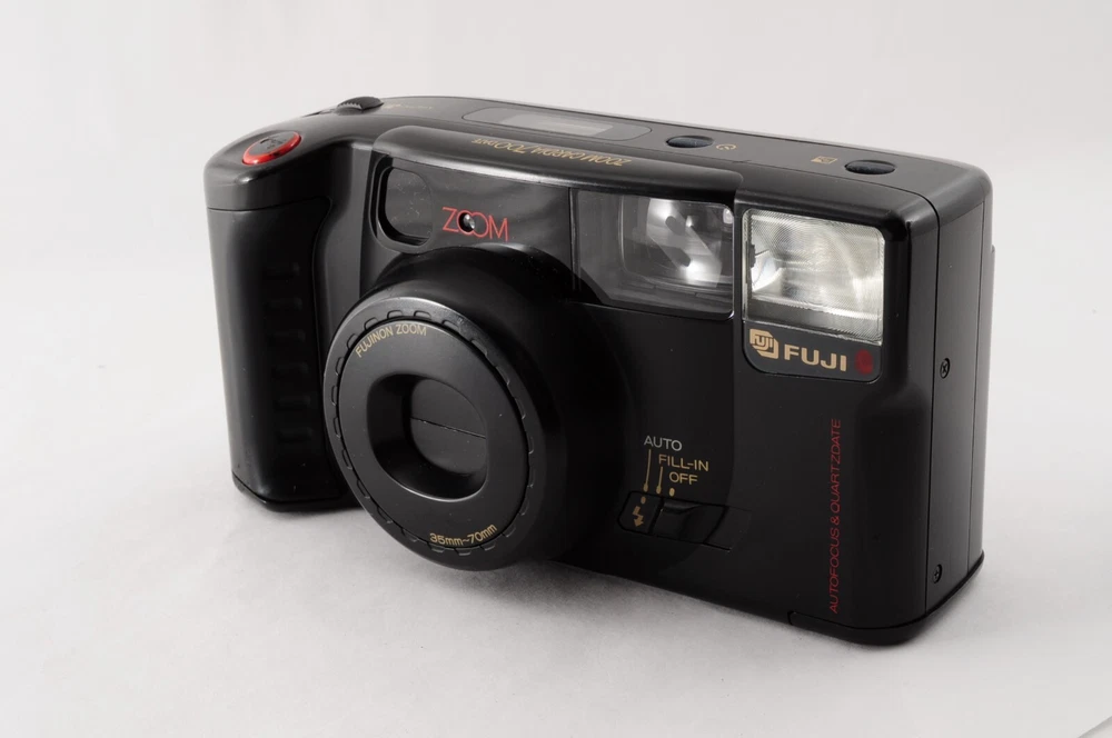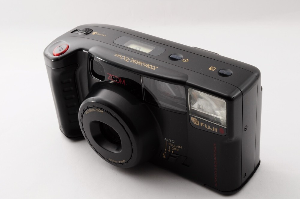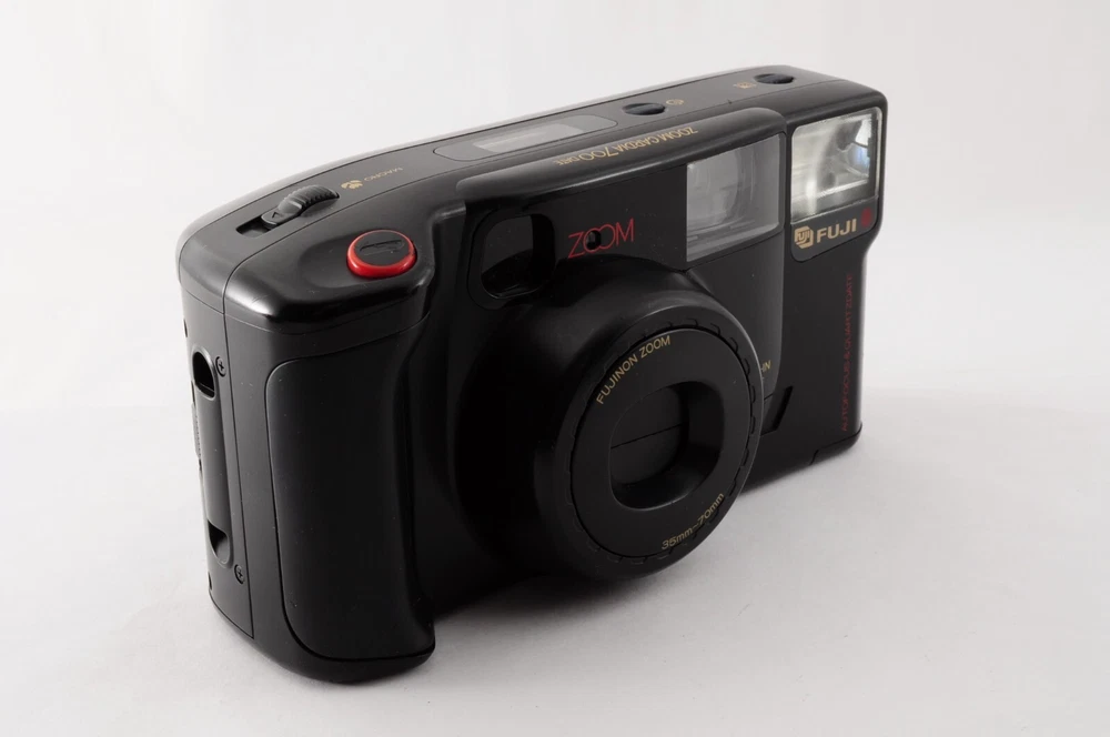 This Fuji Film Zoom Cardia 700 Date is a fantastic 35mm point-and-shoot! The black body looks sleek, and it functions perfectly—sharp viewfinder, smooth zoom, and no major flaws. Great condition with just minor dust, nothing affecting performance. Comes exactly as pictured, ready to shoot. A reliable vintage gem from Japan!