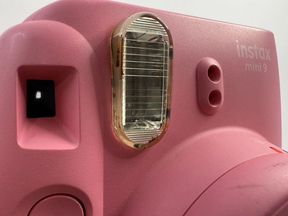 Fuji Instax Mini 9 Fujifilm Instant Film Camera Flamingo Pink Has some kind of defect on the flash clear plastic but doesn’t affect the flashing Tested and working See pics before you buy Thanks 🤙🏼🙏🏼