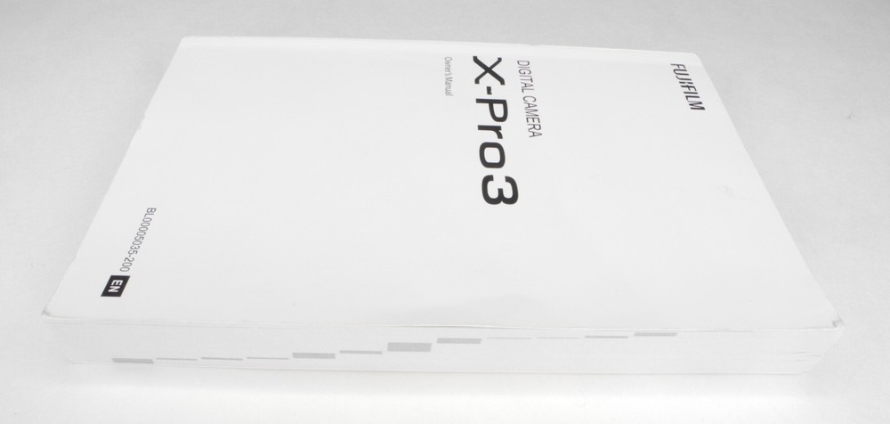 Fuji Fujifilm X-Pro3 Genuine Camera Instruction Manual / User Guide In English Description: Condition: BGN This instruction book is in BGN condition with signs of noticeable wear. This instruction book is 319 pages. Condition: LN "Like New" 99% -100% of NEW EX+ "Excellent Plus" Exceptionally nice. May have small signs of wear but visible only under close inspection. EX "Excellent" Shows moderate wear. May have up to two of the following signs of wear; small or light stain, writing, frayed page edges, small tear or a couple dog eared pages. There will be no missing pages. BGN "Bargain" Shows more than average wear. May have up to three of the following signs of wear; stained cover / pages, writing, frayed page edges, torn cover / pages or dog eared pages. There will be no missing pages. UG "Ugly" Very rough looking. Will have a few of the following dog ears, tears, stains, pages missing, writing, etc.