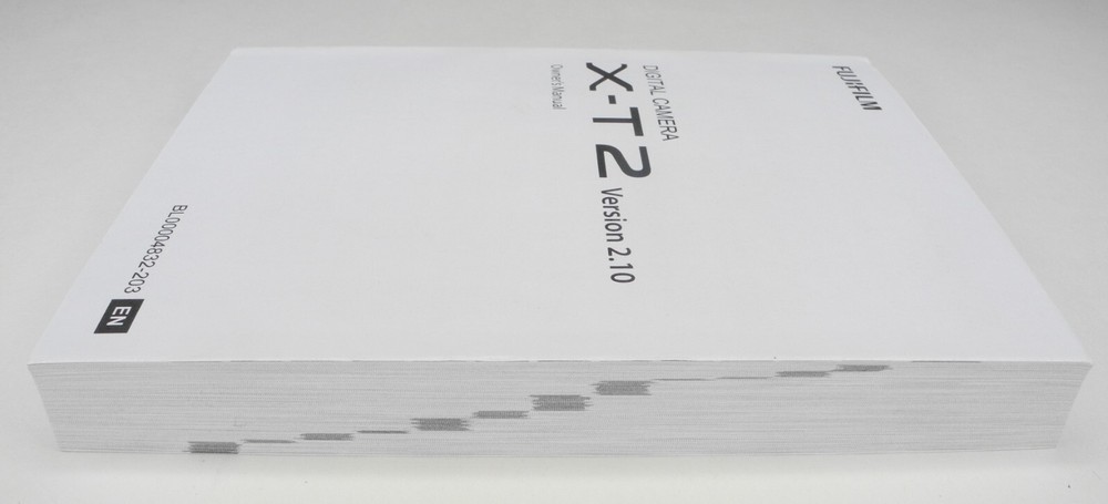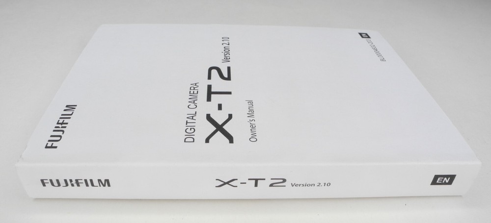 Fuji Fujifilm X-T2 Firmware 2.10 Genuine Camera Instruction Manual In English Description: Condition: BGN This instruction book is in BGN condition with signs of noticeable wear. This instruction book is 345 pages. This instruction book is the updated version for Firmware Version 2.10. The Fujifilm website lists all of the features that were added to version 2.10. This book could be used with earlier firmware versions but there will be a few things in this book that wouldn't apply to earlier versions. Condition: LN "Like New" 99% -100% of NEW EX+ "Excellent Plus" Exceptionally nice. May have small signs of wear but visible only under close inspection. EX "Excellent" Shows moderate wear. May have up to two of the following signs of wear; small or light stain, writing, frayed page edges, small tear or a couple dog eared pages. There will be no missing pages. BGN "Bargain" Shows more than average wear. May have up to three of the following signs of wear; stained cover / pages, writing, frayed page edges, torn cover / pages or dog eared pages. There will be no missing pages. UG "Ugly" Very rough looking. Will have a few of the following dog ears, tears, stains, pages missing, writing, etc.