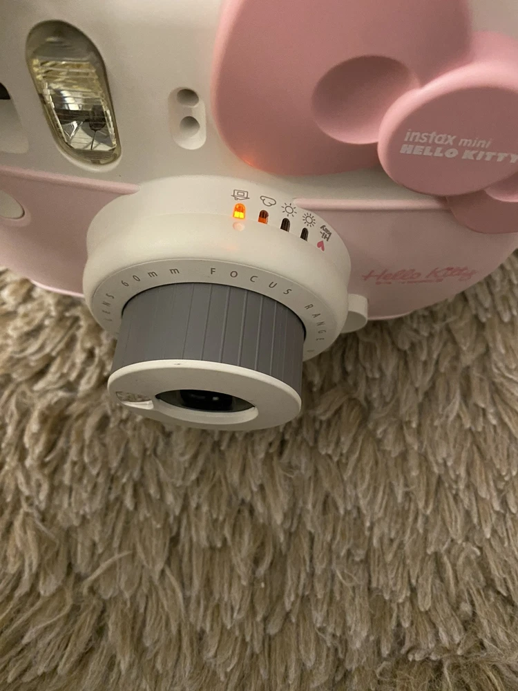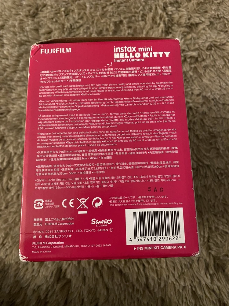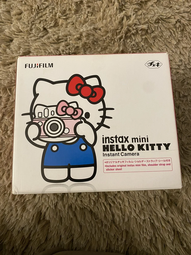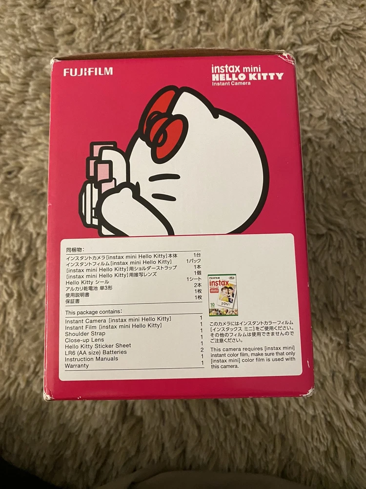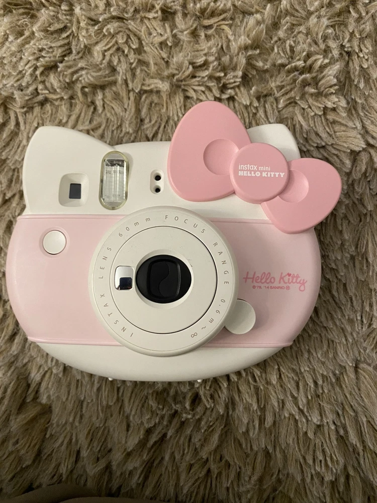 Capture your favorite moments with the Fujifilm Instax Mini Camera in a playful pink hue, themed with the beloved Hello Kitty design. This camera merges the classic charm of instant photography with modern convenience, featuring auto exposure to ensure bright and clear images every time. Designed with a fixed focus and originating from Japan, this camera is a part of the renowned Instax series by Fujifilm. Its compact form, measuring 5.7 inches in height, 6.6 inches in length, and 2.7 inches in width, makes it an ideal companion for on-the-go shooting and capturing life's spontaneous moments. Sold as is. Doesn’t come with accessories. The camera does turn on. Takes a picture when turned on.