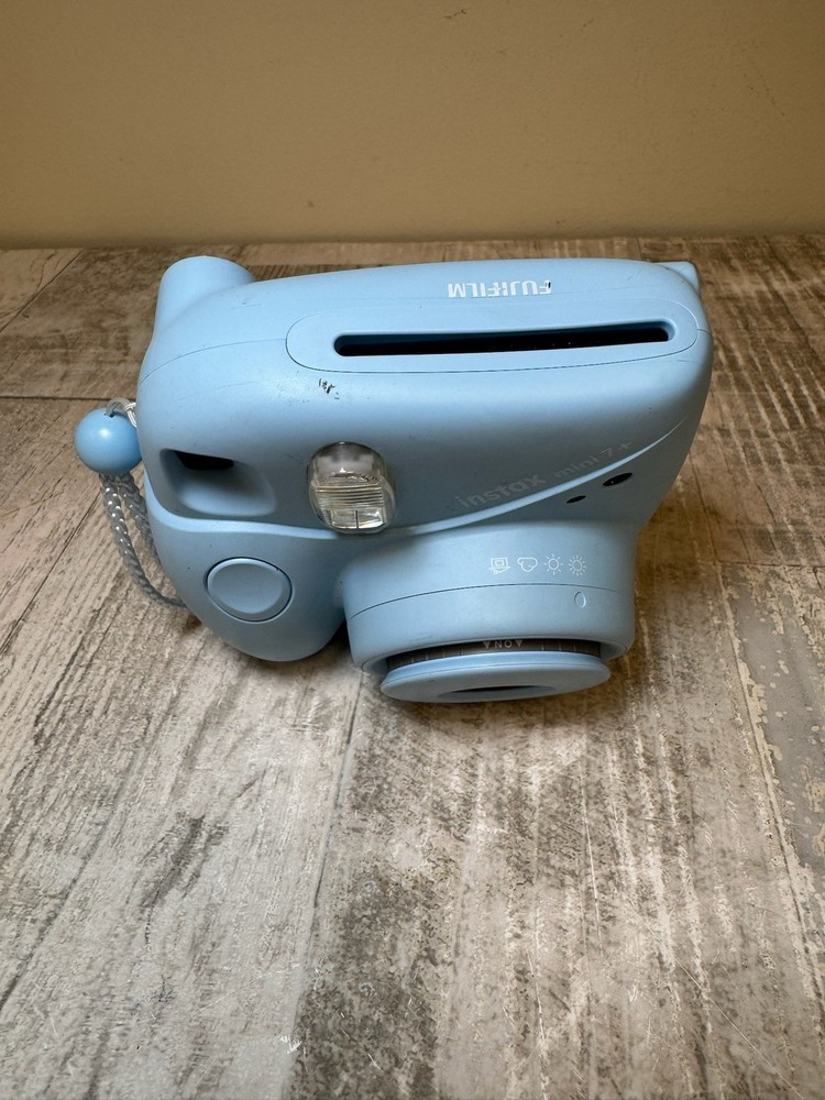 The Fujifilm INSTAX MINI 7 PLUS 7+ Light Baby Blue Instant Camera is a compact and stylish camera that takes Instax Mini format photos. It features auto focus, built-in flash, and a cute baby blue color. This camera is tested and confirmed to work, making it a reliable choice for capturing memories on the go. With its convenience and ease of use, it is a great option for those looking to add a touch of retro charm to their photography. The camera is manufactured in Thailand, ensuring quality craftsmanship and attention to detail.