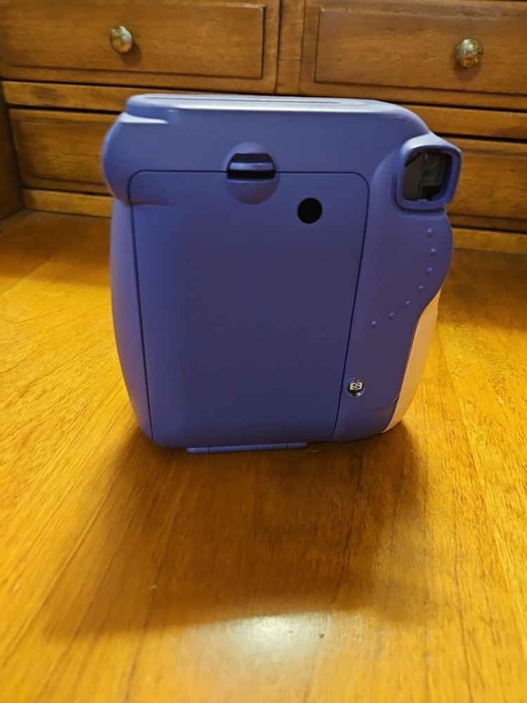 This Fujifilm Instax Mini 8 instant camera in dark purple is a great addition to your photography gear. It features auto exposure and built-in flash for perfect shots every time. The camera is tested and working, and it comes with a pink battery cover for easy identification. With its compact design and auto focus, this camera is perfect for on-the-go photography. It uses Instax Mini format film and was manufactured in China. This camera is a great choice for anyone looking to capture memories in a fun and easy way.