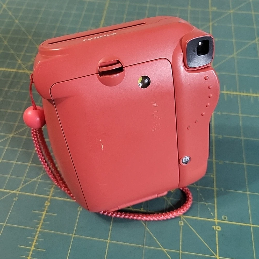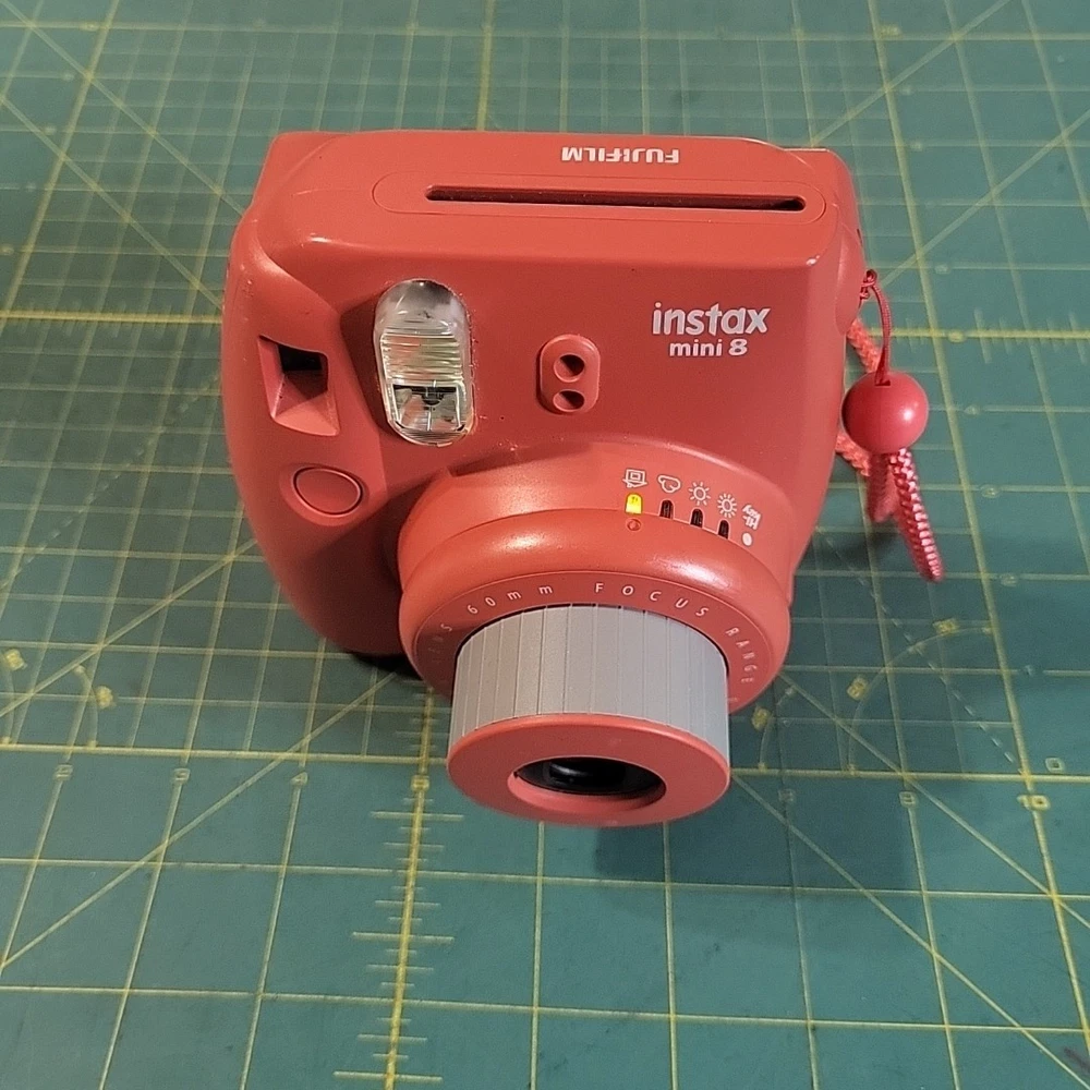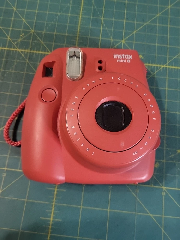 The product is a Fujifilm Instax Mini 8 instant film camera in Raspberry Red color. It is from the Compact series, with Instax Mini format. The model has been tested and is in working condition. Batteries and film not included .