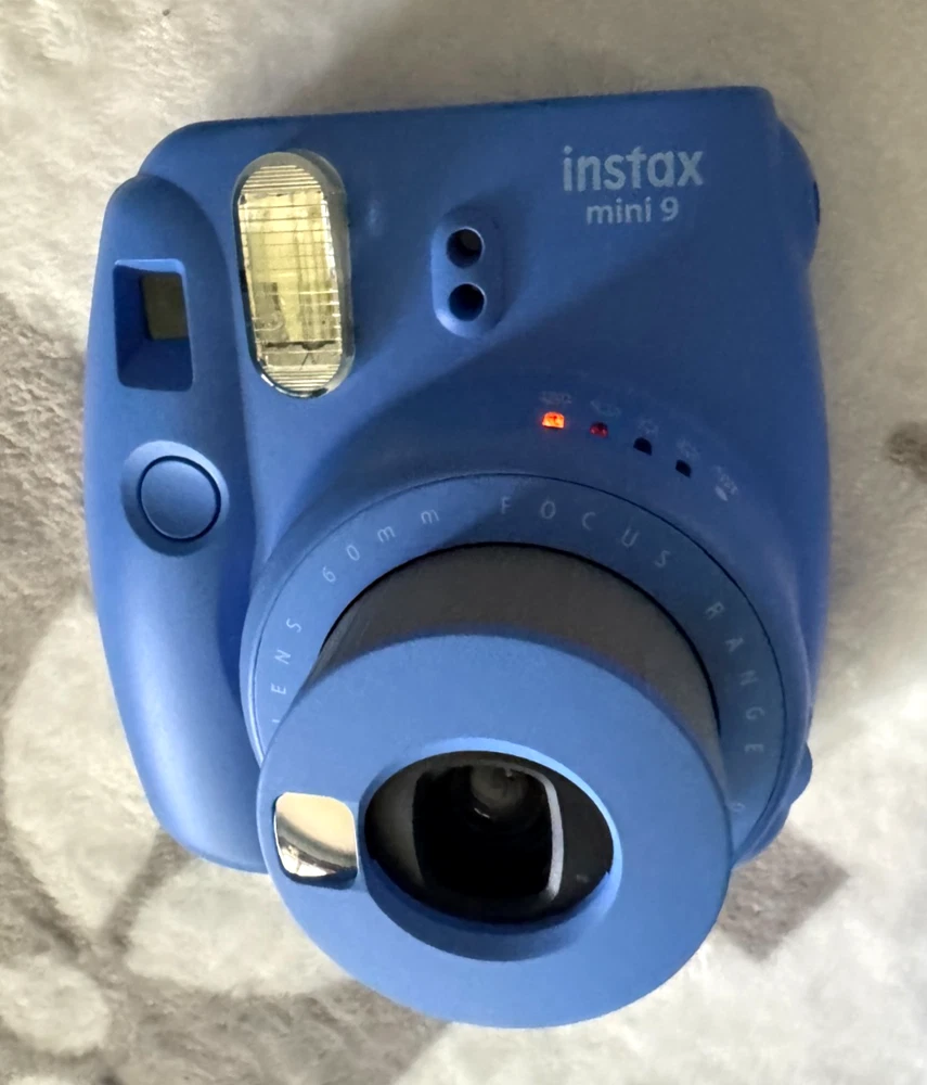 The Fujifilm Instax Mini 9 in Cobalt Blue is a compact instant film camera that captures images in a 4.6x6.2cm format. It features auto focus, a built-in flash, and comes with a case and film included. This lightweight camera is easy to use and perfect for those looking to enjoy the convenience of instant photography. Very nice condition-light use Comes with a 10 pack of Film and batteries We welcome any questions or requests for additional photos. Thanks for Looking