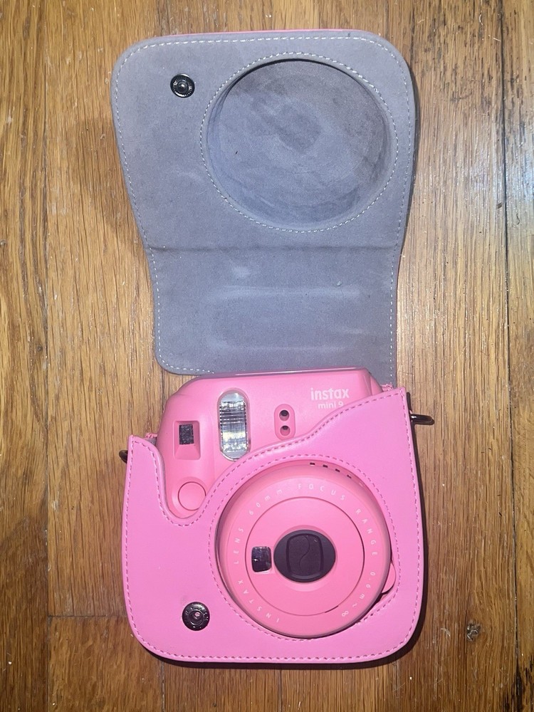 Fujifilm Instax Mini 9 Instant Camera in Flamingo Pink with Case Condition: Pre-Owned and in good condition. Needs new batteries and film. Includes: Camera and Case