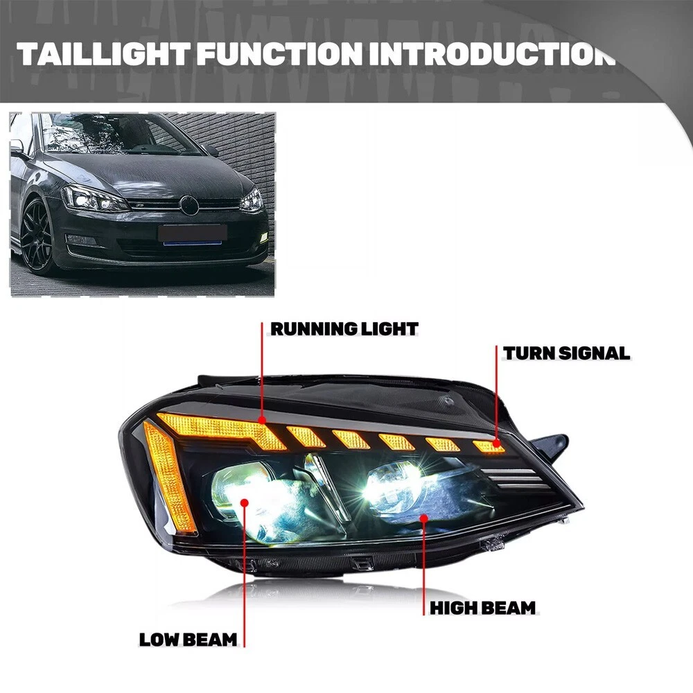 Sunny-Light Lexus Style LED Tail Lights Smoked for Toyota Camry Sedan 2018-22 24 Brake Light BUY NOW Pair LED Front Fog Light for 2020-2024 Land Rover Defender 90 110 130 Assembly BUY NOW LED Tail Lights & Tailgate Light for Toyota Corolla E210 2020-2024 Assembly BUY NOW RGB LED Headlights for 11th Gen Honda Civic 2022-2024 RGB DRL Headlight Assembly BUY NOW LED Tail Light Assembly Turn Signal Light For Dodge Ram1500 2500 3500 2013-2018 BUY NOW LED Grille Light For 2020-2024 Land Rover Defender 90 110 130 DRL Accessories BUY NOW RGB LED Tail Lights Lamp Assembly Fits Toyota Camry 2018-2024 XSE XLE SE LE TRD BUY NOW Smoke Tail Light Assembly 2018-2022 For Toyota Camry LE SE XLE XSE TRD Rear Lamp BUY NOW LED Projector Headlights For Toyota 4-Runner 2014-2023 w/ Dynamic DRL&Sequential BUY NOW Smoked LED Tail Lights Kit Fits 2018-2023 Toyota Camry Sequential Signal Lamps BUY NOW RGB LED Headlights For Corvette C6 2005-2013 Sequential Turn Signal Assembly BUY NOW LED Headlights For Toyota 4Runner 2014-2023 DRL Sequential Turn Signal Head Lamp BUY NOW LED Headlights For VW Jetta MK6 2011-2018 Start UP Animation Daul-Beams Lamps Fitment: For Jetta MK6 2011 2012-2018 Package Includes: 1 Pair (Driver Side + Passenger Side) Headlights Assembly Set (Including Some Installation Accessories) Professional Installation is Highly Recommended Specification : Brand :TT-ABC Product Condition: 100% Brand New Type: Led Headlights Assembly A few second of Start up Animation Sequential Turn Signal Full LED, No need to purchase additional light bulbs Functions: DRL +High Beam+Low Beam lights+Turn Signal Housing Color: Black Lens Color:Clear Operating Voltage: 12V-14V Material:High Quality ABS Plastic+PC+PMMA Waterproof Rate:IP68 Warranty:1 year Features: DOT-Certifed, Durable, Easy lnstalation, High Quality, OE-Certified, SAE-Cerified, Sealed Assembly, Waterproof, ISO-Certifed, Dustproof And Shurdy Note: 1.Using your factory supplied connector/harness will avoid cutting or modifying any wires.It is plug and play, easy to install still professional installation is recommended. Benefits of LED making you safer on the road for other road users to see. 2.If you have any problem, please contact me . About us Payment Shipping Returns Contact us Feedback My store specializes in selling various car modification and customization products, including headlights, high beams, low beams, fog lights, contour lights, turn signals, brake lights, reverse lights, and interior lighting. At the same time, we have our own production factory and cooperate with hundreds of component factories, committed to providing customers with high-quality products, the most favorable prices, and a professional after-sales customer service team. Our goal is to meet the needs of our customers and provide them with an excellent shopping experience. 1.We can accept payment method is PayPal, Google Pay, Visa, Master Card, Amex and Discover and other payment way. 2.Immediate payment needs to be processed for items with Add to Cart option so that any promotional discounts can be applied to your order immediately. 3.Please confirm if the address and postal code are correct before placing an order! Convenient and fast shipping. 1.The package is Shipping from the US Stock by USPS,FedEx or UPS . 2.Shipment will be made within 1 business day after payment, and delivery will take 1-5 business days (excluding packages with a unit price below $50) 3.Please offer us your telephone number and correct zip code,or your order will be delayed since the courier will need it for the delivery.(not ship to Alaska, Hawaii and Puerto Rico). 4.Shipping Fee is include packing & handling charges. 5.International Customers:Import duties, taxes, value added tax and Other charges are Not Includes in the item price or shipping charges. These charges are the buyer’s responsibility and vary by country/location.These charges are not to be confused for additional shipping charges. 6.Please check with your country’s customs office to determine what these additional costs will be prior to bidding/buying. These charges are normally collected by the delivering freight (shipping) company or when you pick the item up. These charges are not to be confused for additional shipping charges. There are some tips for you: 1. If There are any problems with the product, please contact with us before leaving neutral and negative reviews feedback ,give me a Chance to make it right 2. If you are in our exclusion countries. Please write to us for shipping .If When the goods arrive, please check them carefully 3. If you find that the goods have been damaged, please be sure to refuse to collect the goods and ask the courier to return the goods to us. If the goods are damaged, please do not collect. 4. If the item you have ordered is defective, contact us within the 30 day warranty period, we will replace the defective item for you with an item of equal functionality at first. 5. If buyer do not want neither replacement nor partial refund, but want returning,buyer should be responsible for all the returning ship charges. 6. To be eligible for a return, the item(s) must be in new, unused condition with all original tags and packaging intact. Please note that we cannot accept returns for items that have been used, damaged, or altered in any way. Our working hours are from 9:00am to 18:30 China time (Monday to Friday). Communication is the best way to solve problems. If you have any questions, please contact us or leave us a free message. We will reply immediately at our convenience. After-sale If it happens that the lights get moisture after you install them on your car, it would be normal for first time using. You just need to keep using for a period of days, the moisture will disappear. because there is inner air cycling in the lights as we design. As for headlights, you can also open the cover of low/high beam so that the moisture will out more quickly. If the moisture still exist, please feel free 