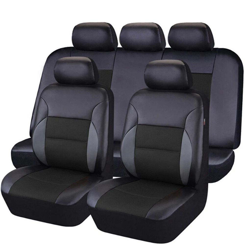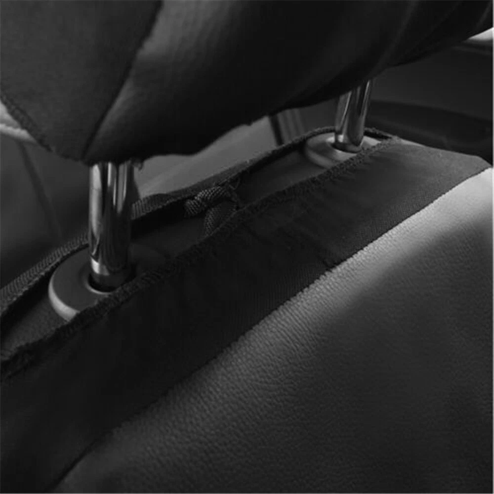 Add our listing to Watchlist Or Add to Cart , you will get more discount This seat covers fits most Detachable Headrest seats . Seat covers can extend the life of your vehicle and keep your seats looking brand new and clean. These seat covers fit most of the standard vehicles including sedan, SUV, truck, van and minivan. 1, Universal application fits almost all 5-seats Cars 2, Helps Protect a Nice Seat or Disguise an Old One 3, Airbag compatible 4, Easy to install Features: 100% Brand new and high quality! Easy Installation Durable and Long Lasting Comfortable in Four Season Color: Black Material: PU Leather Stitching Breathable Fabric Description: 1.The car seat cover is full set. 2.It is very easy to install the car seat cover, doesn't need to dismantle the seats, a person can complete it in 20 minutes. 3.The car seat cover doesn't affect the airbag, doesn't affect the child safty seat, doesn't affect the seat belts,too. 4.The car seat cover is universal,it is suitable for most of cars,If you are unsure if this cover is right for your vehicle, please contact us before buying. Package Include: 5 seat head covers: 30*27cm 2 front seat covers: 118*56cm 1 backrest: 135*76cm 1 rear seat cushion: 135*56cm Accessories: one pack of hooks