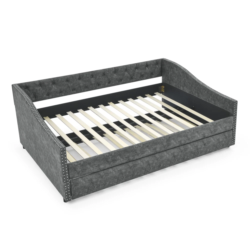 Absolutely love this daybed! The tufted upholstery and nailhead trim give it a stylish, mid-century vibe that elevates any space. The trundle is a game-changer—perfect for guests—and the sturdy frame ensures durability. Super comfortable for lounging or sleeping, plus it looks way more expensive than it is. A fantastic blend of form and function!