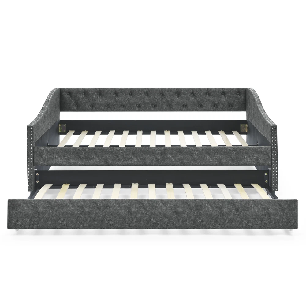 [Stunning Look] This mid-century - inspired daybed features a button tufted back which creates an elegant look. The waved shape arms decorated with nailhead trimming blends chic details with classic style. This daybed lends a sophisticated air to your home. [Functional Trundle] This exceptional piece of living room furniture is manufactured to meet your needs, allowing the cozy bed to not only afford a comfortable seating experience but also one trundle under the bed provide more sleeping space. [Reinforced Frame] The frame of this daybed with drawers is crafted from a combination of eucalyptus wood and MDF board to effortlessly hold up to 500lbs. [Comfortable Experience] Foam padded sides and back that provide optimal back support and comfort.This ful... Full Size Daybed with Twin Size Trundle Upholstered Tufted Sofa Bed, with Button on Back and Copper Nail on Waved Shape Arms,Grey (80.5"x55.5"x27.5") [Stunning Look] This mid-century - inspired daybed features a button tufted back which creates an elegant look. The waved shape arms decorated with nailhead trimming blends chic details with classic style. This daybed lends a sophisticated air to your home. [Functional Trundle] This exceptional piece of living room furniture is manufactured to meet your needs, allowing the cozy bed to not only afford a comfortable seating experience but also one trundle under the bed provide more sleeping space. [Reinforced Frame] The frame of this daybed with drawers is crafted from a combination of eucalyptus wood and MDF board to effortlessly hold up to 500lbs. [Comfortable Experience] Foam padded sides and back that provide optimal back support and comfort.This full-size daybed provides you with a great seating experience that ergonomically supports your back and arms. Meanwhile gorgeous soft fabric ensures you can keep cool for extended periods. [Storage Function] Pull-out drawers provide more storage space for cloths, pillows, toys and so on. [Overall size] 80.5''x55.5''x27.5'' Daybed Size:75x54 inches Trundle size : 75x39 inches No Matress Included. Maximum Weight Capacity:500 lbs. Product Description Item Specifics Brand Unbranded Type sofa Color Grey Upholstery Fabric Polyester Item Length 81.3 in Item Width 12.8 in Item Height 7.3 in About us Dear buyer, Thank you for visiting my store! Our warehouses are located in many regions around the United States. According to the customer's delivery address. Use USPS/UPS/DHL logistics transportation service. Prioritize the best quality logistics solutions to transport packages. Ensure package delivery time, At the same time. Have any after-sales problems, Feel free to contact us. At your service Payment PayPal is our preferred method of payments it's the quickest, easiest and most secure way to pay for your goods or services online. PayPal offers buyer and seller protection should there be a problem. If you do not have a PayPal account, to get started and buy your first item with us is very easy. Simply click on the 'Buy It Now' button and follow the eBay checkout steps. Select PayPal as the payment method you then will be given the chance to enter your card details in to PayPal's secure checkout in order to pay for your order. Shipping 1. Your purchase is shipped directly to you as soon as we have received your cleared payment. 2. Normally all of parcels would be shipped within 3days(From Monday to Saturday). 3. We will send information on eBay or email if the parcel was delayed due to our holiday. 4. We provide three kinds of shipping for choice. Shipping way depend on delivery address. Returns If an unit is received defective, of course we take it back or replace it. If the unit is received as expected, we must charge for our expenses if you want to send it back. We have to charge for the work of handling, retesting and restocking. DESCRIPTION PAYMENT SHIPPING RETURN POLICY CONTACT US Shop Category Store Home Other Hot Item Flextreme 5/8 in. Dia x 50 ft. Black Performance Rubber Garden Hose USD 46.70 8 cu. ft. Dual-Wheel Wheelbarrow, Pro-Grade Poly Bucket, Steel Handles, Dual 16 USD 223.90 Co-op Cycles DRT 1.1 Mountain Bike USD 419.29 6 cu. ft. Steel Tub Wheelbarrow with Wooden Handles and Pneumatic Tire USD 113.90 5.5 cu. ft. Heaped Poly Smart Plastic Garden Cart USD 70.98 Delivery New List Item Amonia 5-piece Dining Set, Turned-Leg Dining Table with 4 Tufted Chairs USD 749.26 Dark Cherry 1pc Sofa Table Open Bottom Shelf Glass Insert Top Cocktail Table Liv USD 395.15 Convertible Combination Sofa Sofa L-Shaped Sofa with Storage Cabinet Footstool, USD 380.92 Amonia 5-piece Dining Set, Turned-Leg Dining Table with 4 Tufted Chairs USD 749.26 Rustic Style Antique White 1pc SOFA TABLE Open Bottom Shelf Plank Style Table To USD 358.70 Help & Info Payment Policy Shipping Policy Return Policy FAQ About Us Full Size Daybed with Twin Size Trundle Upholstered Tufted Sofa Bed, with Button on Back and Copper Nail on Waved Shape Arms,Grey (80.5"x55.5"x27.5") [Stunning Look] This mid-century - inspired daybed features a button tufted back which creates an elegant look. The waved shape arms decorated with nailhead trimming blends chic details with classic style. This daybed lends a sophisticated air to your home. [Functional Trundle] This exceptional piece of living room furniture is manufactured to meet your needs, allowing the cozy bed to not only afford a comfortable seating experience but also one trundle under the bed provide more sleeping space. [Reinforced Frame] The frame of this daybed with drawers is crafted from a combination of eucalyptus wood and MDF board to effortlessly hold up to 500lbs. [Comfortable Experience] Foam padded sides and back that provide optimal back support and comfort.This full-size daybed provides you with a great seating experience that ergonomically supports your back and arms. Meanwhile gorgeous soft fabric ensures you can keep cool for extended periods. [Storage Function] Pull-out drawers provide more storage space for cloths, pill