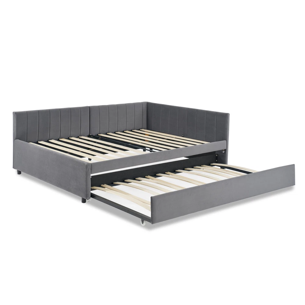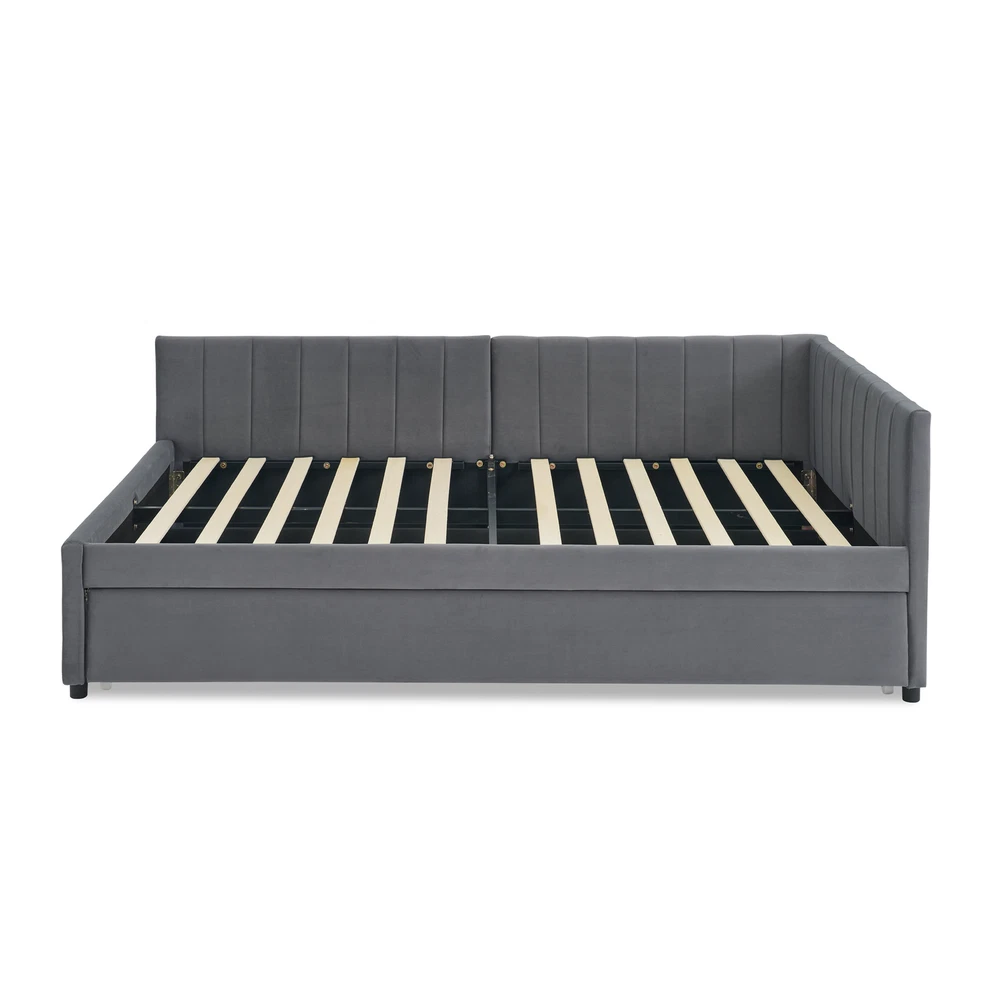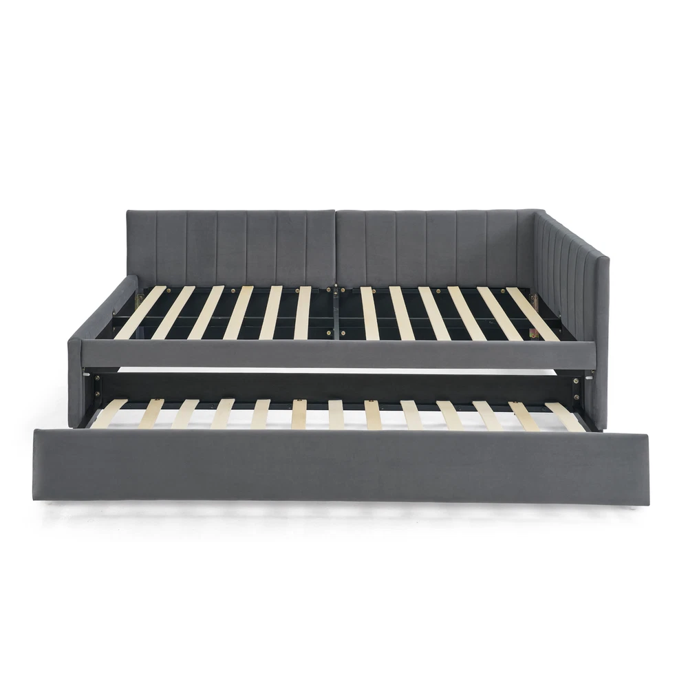 This daybed is a game-changer—stylish, versatile, and super functional! The tufted upholstery and chic stripe design add elegance to any room, while the hidden trundle offers extra sleeping space without sacrificing style. Perfect for lounging, hosting guests, or even as a cozy reading nook. The sturdy frame and plush cushions make it comfortable for both sitting and sleeping. Whether in a living room, bedroom, or office, it blends seamlessly while maximizing space. A must-have for small spaces or anyone who loves multifunctional furniture!