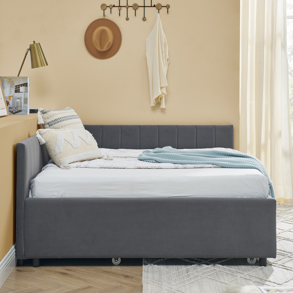 [Stunning Look] Enhanced with a stylish vertical stripe pattern on the backrests, our living room furniture exudes a designer aesthetic. Suitable for family rooms, bedrooms, offices, and cafes, these pieces elevate any space with comfort and sophistication. [Functional Trundle] This exceptional piece of living room furniture is manufactured to meet your needs, allowing the cozy bed to not only afford a comfortable seating experience but also one trundle under the bed provide more sleeping space. [Comfortable Experience] The backrest of the sofa couches fits the natural curve of the human body,providing good back support,the height and width of the armrests of the modular sofabed can provide arm support to relax the shoulders,with the pillows can give you... Full Size Daybed with Trundle Upholstered Tufted Sofa Bed, Sofa Bed Frame with Comfortable Backrest and Armrests, Velvet, Grey(79.5''x58''x25'') [Stunning Look] Enhanced with a stylish vertical stripe pattern on the backrests, our living room furniture exudes a designer aesthetic. Suitable for family rooms, bedrooms, offices, and cafes, these pieces elevate any space with comfort and sophistication. [Functional Trundle] This exceptional piece of living room furniture is manufactured to meet your needs, allowing the cozy bed to not only afford a comfortable seating experience but also one trundle under the bed provide more sleeping space. [Comfortable Experience] The backrest of the sofa couches fits the natural curve of the human body,providing good back support,the height and width of the armrests of the modular sofabed can provide arm support to relax the shoulders,with the pillows can give you great relaxation of the back,so that you will not feel tired sitting on the sofas for a long time [Easy assembly] According to detailed instructions, this sofa bed can be easily assembled. If you encounter any problems with the quality or assembly of our product, please feel free to contact us. [Reinforced Frame] The frame of this daybed is crafted from a combination of eucalyptus wood and MDF board to effortlessly hold up to 300lbs. Item Specifics Brand Unbranded Type sofa Color Grey Upholstery Fabric Velvet Item Length 79.5 in Item Width 14 in Item Height 7.5 in About us Dear buyer, Thank you for visiting my store! Our warehouses are located in many regions around the United States. According to the customer's delivery address. Use USPS/UPS/DHL logistics transportation service. Prioritize the best quality logistics solutions to transport packages. Ensure package delivery time, At the same time. Have any after-sales problems, Feel free to contact us. At your service Payment PayPal is our preferred method of payments it's the quickest, easiest and most secure way to pay for your goods or services online. PayPal offers buyer and seller protection should there be a problem. If you do not have a PayPal account, to get started and buy your first item with us is very easy. Simply click on the 'Buy It Now' button and follow the eBay checkout steps. Select PayPal as the payment method you then will be given the chance to enter your card details in to PayPal's secure checkout in order to pay for your order. Shipping 1. Your purchase is shipped directly to you as soon as we have received your cleared payment. 2. Normally all of parcels would be shipped within 3days(From Monday to Saturday). 3. We will send information on eBay or email if the parcel was delayed due to our holiday. 4. We provide three kinds of shipping for choice. Shipping way depend on delivery address. Returns If an unit is received defective, of course we take it back or replace it. If the unit is received as expected, we must charge for our expenses if you want to send it back. We have to charge for the work of handling, retesting and restocking. DESCRIPTION PAYMENT SHIPPING RETURN POLICY CONTACT US Shop Category Store Home Other Hot Item 6 cu. ft. Steel Tub Wheelbarrow with Wooden Handles and Pneumatic Tire USD 113.90 8 cu. ft. Dual-Wheel Wheelbarrow, Pro-Grade Poly Bucket, Steel Handles, Dual 16 USD 223.90 Co-op Cycles DRT 1.1 Mountain Bike USD 419.29 Flextreme 5/8 in. Dia x 50 ft. Black Performance Rubber Garden Hose USD 46.70 5.5 cu. ft. Heaped Poly Smart Plastic Garden Cart USD 70.98 Delivery New List Item Amonia 5-piece Dining Set, Turned-Leg Dining Table with 4 Tufted Chairs USD 749.26 Rustic Style Antique White 1pc SOFA TABLE Open Bottom Shelf Plank Style Table To USD 358.70 Dark Cherry 1pc Sofa Table Open Bottom Shelf Glass Insert Top Cocktail Table Liv USD 395.15 Convertible Combination Sofa Sofa L-Shaped Sofa with Storage Cabinet Footstool, USD 380.92 Amonia 5-piece Dining Set, Turned-Leg Dining Table with 4 Tufted Chairs USD 749.26 Help & Info Payment Policy Shipping Policy Return Policy FAQ About Us Full Size Daybed with Trundle Upholstered Tufted Sofa Bed, Sofa Bed Frame with Comfortable Backrest and Armrests, Velvet, Grey(79.5''x58''x25'') [Stunning Look] Enhanced with a stylish vertical stripe pattern on the backrests, our living room furniture exudes a designer aesthetic. Suitable for family rooms, bedrooms, offices, and cafes, these pieces elevate any space with comfort and sophistication. [Functional Trundle] This exceptional piece of living room furniture is manufactured to meet your needs, allowing the cozy bed to not only afford a comfortable seating experience but also one trundle under the bed provide more sleeping space. [Comfortable Experience] The backrest of the sofa couches fits the natural curve of the human body,providing good back support,the height and width of the armrests of the modular sofabed can provide arm support to relax the shoulders,with the pillows can give you great relaxation of the back,so that you will not feel tired sitting on the sofas for a long time [Easy assembly] According to detailed instructions, this sofa bed can be easily assembled. If you encounter any problems with the quality or assembly of our product, please feel free to