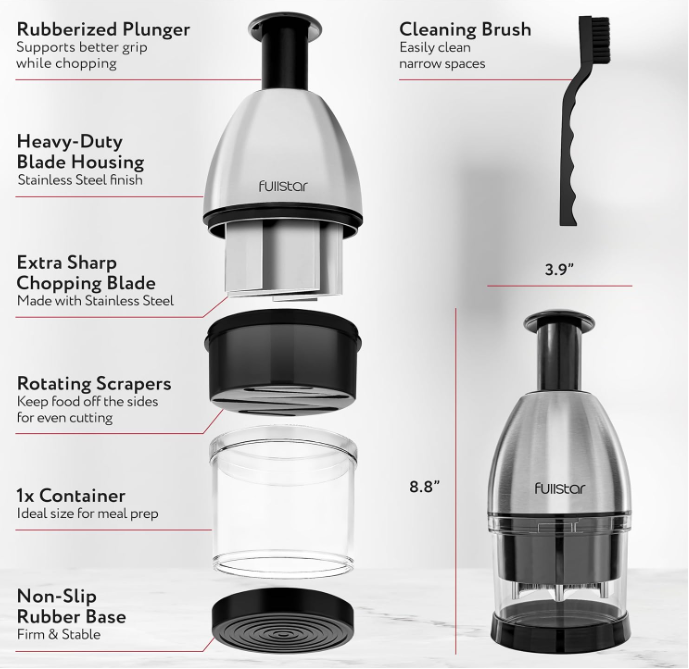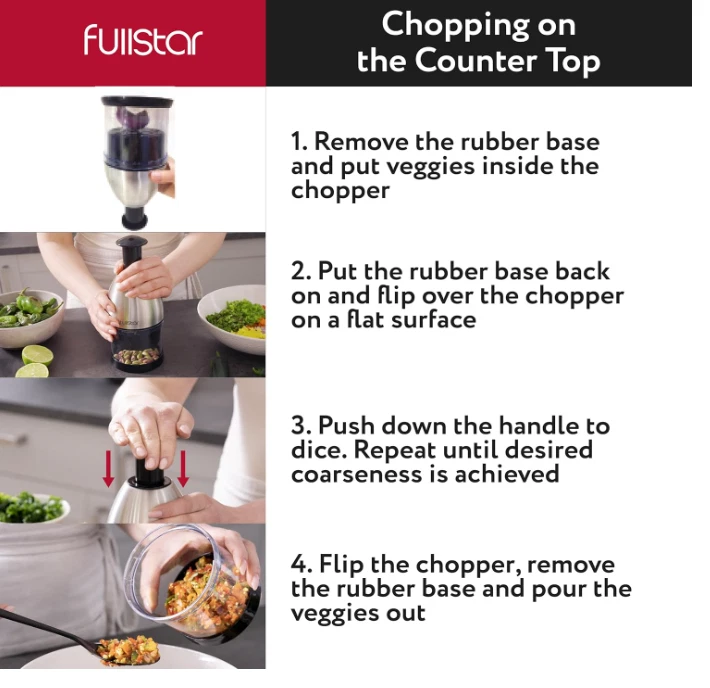 Free eBay listing template designed by dewiso.com Fullstar Vegetable Chopper - Onion Chopper - Pro Food Chopper - Veggie ChoppeR Product Customer Support : If you have any questions or concerns about your order or product, please feel free to contact us. Our customer service team is ready to assist you and resolve any issues within 24 hours. Atención al Cliente : Si tienes alguna pregunta o inquietud sobre tu pedido o producto, no dudes en contactarnos. Nuestro equipo de atención al cliente está listo para ayudarte y resolver cualquier problema dentro de 24 horas. Shipping Easy Cleaning & Storing : This vegetable chopper is extra easy to assemble, disassemble, and store. Rinse and throw in the dishwasher top rack for easy cleanup. A chef's dream! A Kitchen Essential : Whether you're a novice cook or a seasoned pro, the Fullstar Food Chopper is a must-have in any kitchen. It's versatile and easy to use. Please read the instruction manual provided with the Fullstar food chopper closely before use. Shipping : We ship all orders within one day, ensuring a fast and efficient delivery experience. Fácil Limpieza y Almacenaje : Este cortador de verduras es muy fácil de montar, desmontar y almacenar. Enjuágalo y colócalo en la parte superior del lavavajillas para una limpieza fácil. ¡El sueño de todo chef! Esencial en la Cocina : Ya seas un cocinero novato o un profesional experimentado, el cortador de alimentos Fullstar es imprescindible en cualquier cocina. Es versátil y fácil de usar. Por favor, lee el manual de instrucciones proporcionado con el cortador de alimentos Fullstar antes de usarlo. Envío : Enviamos todos los pedidos dentro de 1 día, garantizando una experiencia de entrega rápida y eficiente. Contact Customer Support : If you have any questions or concerns about your order or product, please feel free to contact us. Our customer service team is ready to assist you and resolve any issues within 24 hours. Atención al Cliente : Si tienes alguna pregunta o inquietud sobre tu pedido o producto, no dudes en contactarnos. Nuestro equipo de atención al cliente está listo para ayudarte y resolver cualquier problema dentro de 24 horas. Reduce Prep Time : The Fullstar hand food chopper makes chopping vegetables and nuts quick and simple. The sharp stainless steel blades cut evenly through food, and it's easy to clean, disassemble, and store. Easy Meal Prep with Rust-Resistant Blades : Our vegetable chopper is perfect for anyone who wants to eat healthier but doesn't have a lot of time to spare. Dice potatoes, tomatoes, cucumbers, carrots, and more with the heavy-duty, rust-resistant blades. The 420 stainless steel blades retain razor sharpness for crisp, smooth dicing. Reduce el Tiempo de Preparación : El cortador manual de alimentos Fullstar hace que picar verduras y nueces sea rápido y sencillo. Las afiladas cuchillas de acero inoxidable cortan uniformemente los alimentos, y es fácil de limpiar, desmontar y almacenar. Preparación Fácil de Comidas con Cuchillas Resistentes a la Óxido : Nuestro cortador de verduras es perfecto para cualquiera que quiera comer más saludable pero no tenga mucho tiempo. Pica papas, tomates, pepinos, zanahorias y más con las cuchillas resistentes a la oxidación. Las cuchillas de acero inoxidable 420 mantienen un filo de navaja para un corte preciso y suave. Cortador de Alta Calidad : Hecho con materiales de calidad, libres de BPA y aptos para lavavajillas, este cortador es imprescindible en cualquier cocina. Su diseño elegante es duradero, fácil de limpiar y almacenar. ¡Corta papas, cebollas y más como un chef profesional! Quality Master Chopper : Made with quality, BPA-free, dishwasher-safe materials, this chopper is an absolute kitchen must-have. Its sleek design is durable, easy to clean, and store. Effortlessly slice potatoes, onions, and more like a pro chef!