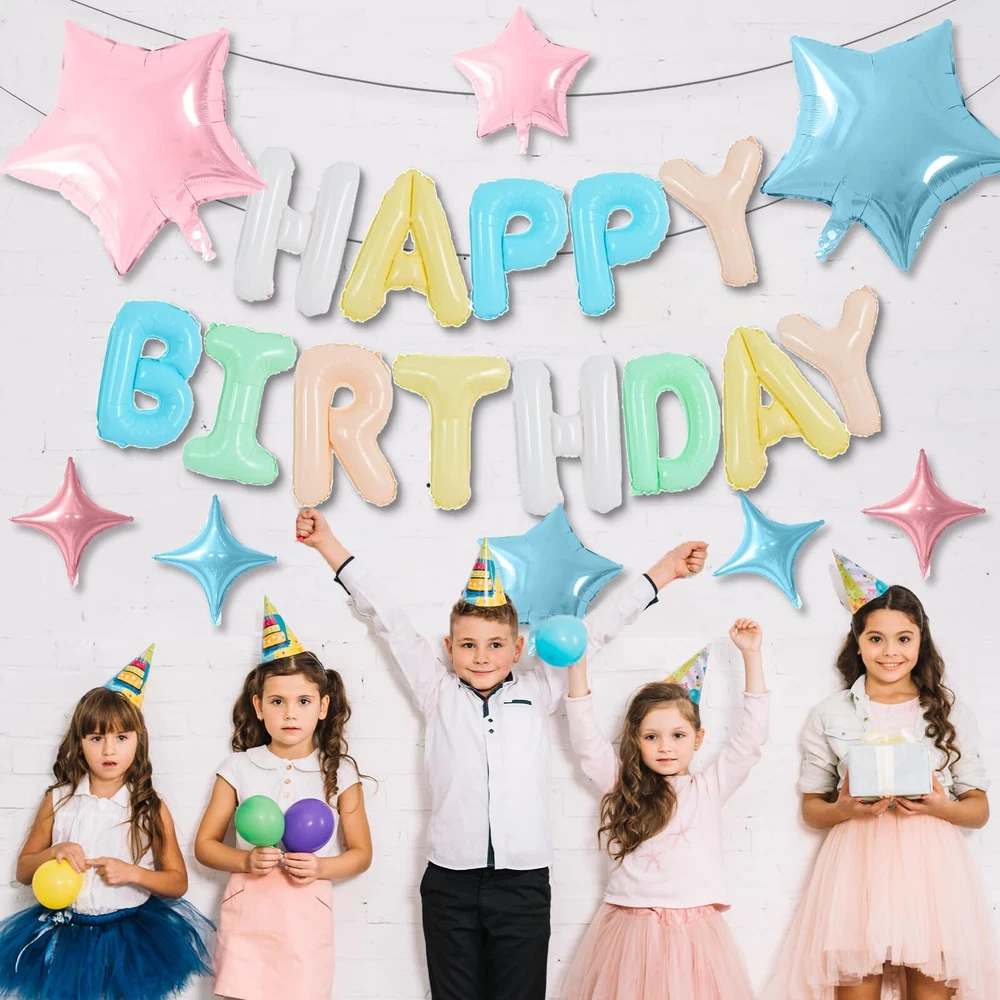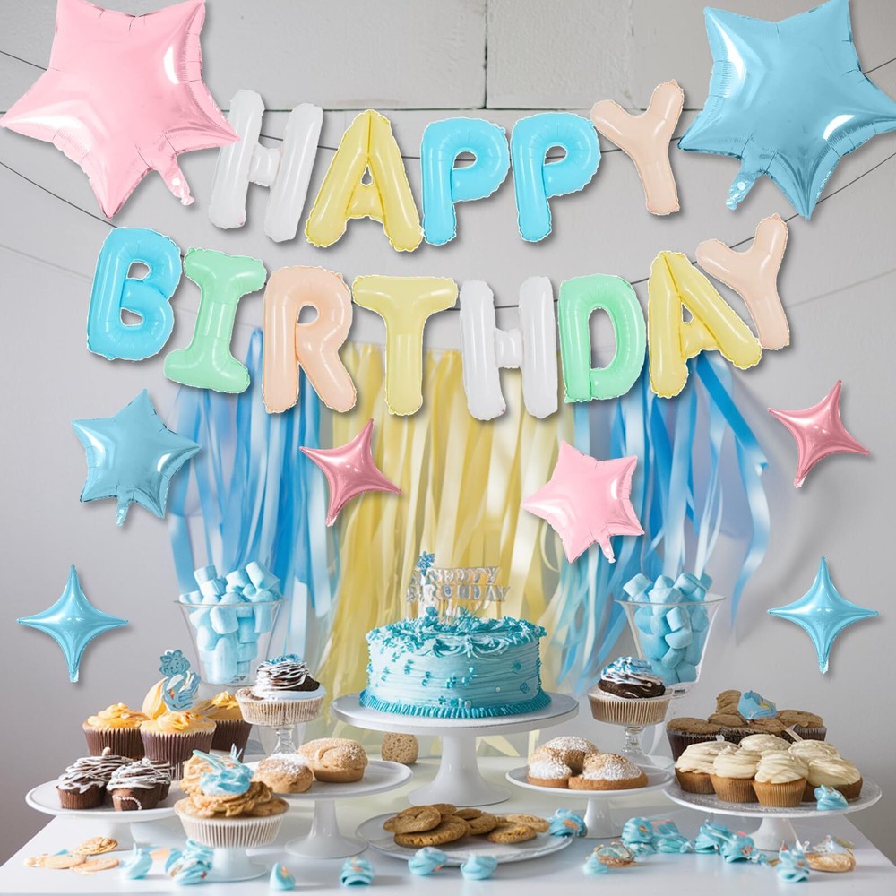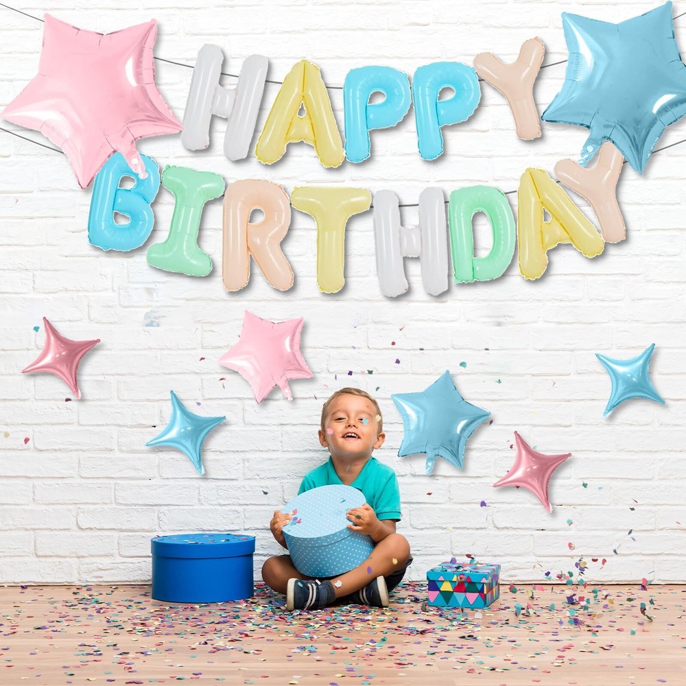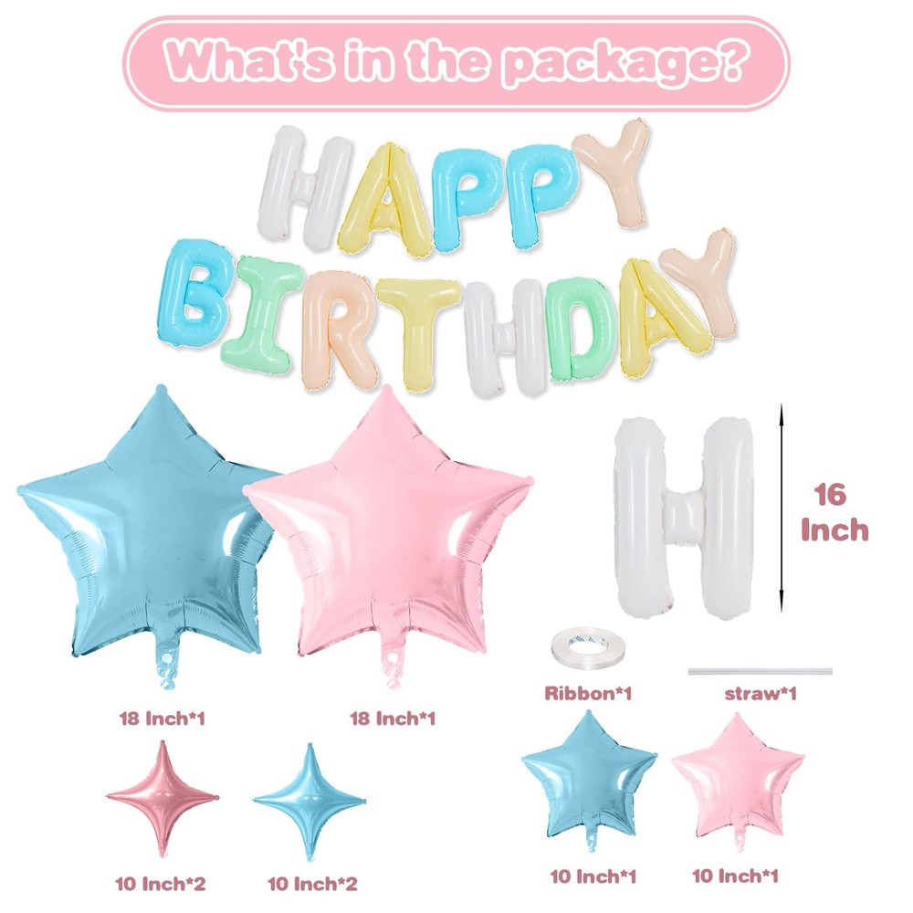 FunHot Happy Birthday Balloons, Colorful Happy Birthday Banner, Pastel Birthday Balloons 16 Inch Mylar Foil Letter Balloons with 8 Pcs Blue Pink Star Balloons for Boys Girls Birthday Party Decorations Package Includes: Our pastel happy birthday balloons set come with 13 x pastel HAPPY BIRTHDAY letters (16 inch), 1 x 18 inch pastel blue star balloons, 1 x 18 inch pastel pink star balloons, 3 x 10 inch pastel blue star balloons, 3 x 10 inch pastel pink star balloons, 1 x white ribbon, 1 x straw. Premium Foil Material: Our happy birthday banners are made from top-notch aluminum foil, ensuring durability, sturdiness, and a shiny appearance without air leakage.Make your party celebration easy and fun. Simple to Use: Inflating the pastel foil letter and star balloons is quick and easy with the provided straw. The happy birthday foil balloons feature a self-sealing valve for effortless inflation and deflation: simply inflate them to 92% capacity using a pump to allow for complete expansion. Once inflated, use tape or the included ribbon to hang the birthday balloons on walls, windows, curtains, ceilings, in the backyard, or anywhere else you desire, indoors or outdoors. Birthday Party Decoration: Hang these cheerful foil happy birthday balloons banners in the kitchen, living room, backyard, or party area to show the birthday friends or family your love and appreciation! Their vibrant colors will make your party pop, creating a festive atmosphere that's ideal for creating unforgettable memories and having a blast with friends and family. Warm Tips: Avoid over-inflation of happy birthday balloons and avoid exposure to straight sunlight, high temperature and sharp objects to prevent bursting. Package Includes: Our pastel happy birthday balloons set come with 13 x pastel HAPPY BIRTHDAY letters (16 inch), 1 x 18 inch pastel blue star balloons, 1 x 18 inch pastel pink star balloons, 3 x 10 inch pastel blue star balloons, 3 x 10 inch pastel pink star balloons, 1 x white ribbon, 1 x straw. Premium Foil Material: Our happy birthday banners are made from top-notch aluminum foil, ensuring durability, sturdiness, and a shiny appearance without air leakage.Make your party celebration easy and fun. Simple to Use: Inflating the pastel foil letter and star balloons is quick and easy with the provided straw. The happy birthday foil balloons feature a self-sealing valve for effortless inflation and deflation: simply inflate them to 92% capacity using a pump to allow for complete expansion. Once inflated, use tape or the included ribbon to hang the birthday balloons on walls, windows, curtains, ceilings, in the backyard, or anywhere else you desire, indoors or outdoors. Birthday Party Decoration: Hang these cheerful foil happy birthday balloons banners in the kitchen, living room, backyard, or party area to show the birthday friends or family your love and appreciation! Their vibrant colors will make your party pop, creating a festive atmosphere that's ideal for creating unforgettable memories and having a blast with friends and family. Warm Tips: Avoid over-inflation of happy birthday balloons and avoid exposure to straight sunlight, high temperature and sharp objects to prevent bursting. Shipping from the USA All of our products are shipped from the USA, ensuring quick delivery to your destination. Payment We offer the following payment methods: PayPal, credit card, bank transfer, and eBay's secure payment system. Free Shipping & Free Returns Shipping within the USA is FREE. Additionally, any return is absolutely free for you. Risk-Free Purchase You have the option to return an item within 30 days without any justification. We cover the return shipping costs! Fast Shipping We ship immediately upon receipt of payment. Generally, the package is delivered within 2-3 days in the USA. If it takes longer, we will contact you. Quality and Costs Made in Europe, USA, China No customs fees or additional charges Total satisfaction guarantee Invoice with declared VAT available upon request in .pdf format Feedback Your feedback is very important to us. After you pay for your purchase, you will automatically receive positive feedback from us.