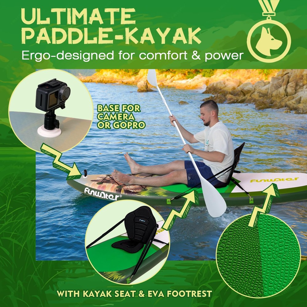 This inflatable paddle board is a game-changer! Super stable and easy to use, even for beginners. The military-grade PVC is tough yet lightweight, and it inflates quickly. Love the included premium accessories—especially the kayak seat for versatile fun. Super portable and holds air perfectly. Great for all skill levels, and the fast delivery was a nice bonus. Highly recommend for anyone wanting endless water adventures!