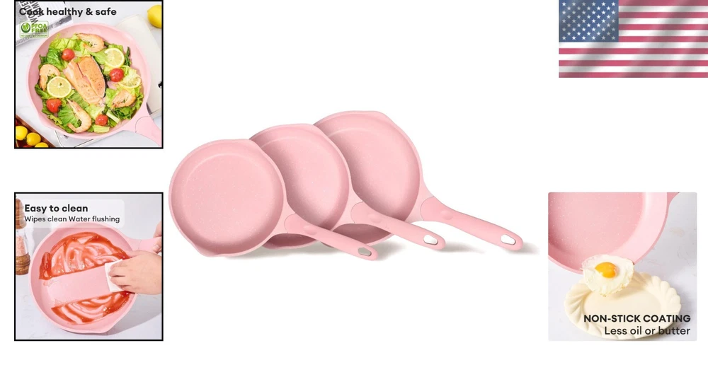 Functional Nonstick Skillets Set (8" 9.5" 11") - Lightweight Aluminum Design ‹ › ‹ › ‹ › ‹ › ‹ › ‹ › ‹ › ‹ › ‹ › Functional Nonstick Skillets Set -Includes three sizes: 8", 9.5", and 11" for versatile cooking choices. Features: Granite stone nonstick coating, PFOA free for safe and healthy cooking. Requires less oil or butter for cooking, promoting a healthier lifestyle. Lightweight aluminum design makes handling effortless. Compatible with all stove types, including ceramic, electric, and induction, for universal usability. Quick to heat for fast and efficient meal preparation. Versatile for cooking a variety of dishes: omelettes, bacon, steak, salmon, and more. Includes a diversion port on both sides for easy pouring of contents. Bakelite handle stays cool, providing a safe grip even at high temperatures. Benefits: Health-conscious cooking with minimal oil requirements. Durable lightweight material ensures longevity without compromising performance. Versatile sizes cater to any meal preparation needs. Consistent heating for perfectly cooked meals every time. Cool-touch handle for safety and comfortable handling. Why choose our Nonstick Skillets Set? Elevate your culinary experiences with this Functional Nonstick Skillets Set, thoughtfully crafted for the modern home chef. Featuring a safe, PFOA-free granite stone coating, these skillets offer unparalleled nonstick performance, allowing you to create delicious meals with minimal effort and cleanup. Made of lightweight aluminum, they heat quickly and effectively, ensuring your dishes are cooked to perfection. This versatile set is compatible with all stovetops, making it a practical addition to your kitchen repertoire. Whether you're frying eggs for breakfast, sizzling steaks for dinner, or preparing a quick lunch, these skillets make every cooking task easier and healthier. Experience the joy of effortless cooking and achieve restaurant-quality results in the comfort of your own kitchen. Order your Functional Nonstick Skillets Set today and transform your cooking experience! Shipping Free & Fast Shipping - We offer free shipping to most of the USA with a normal delivery time of 3-7 days. However, due to the current situation, additional delivery time (up to 3 weeks) may be required for some items. Alternative Carriers - We may use alternative carriers (e.g. USPS, FedEx, UPS, etc.) to ensure your package arrives safely and on time. Due to the use of multiple carriers, we are unable to provide a tracking number automatically. Handling Time - Orders are processed and shipped within 1-2 business days of receiving cleared payment. Shipping Restrictions - Shipping to Alaska, Hawaii, Puerto Rico, Guam, and other US territories may incur shipping charges or delivery restrictions. Please contact us before ordering, or your order can be refunded/cancelled. State Restrictions - There may be restrictions based on your state of purchase. For example, certain items may not be shipped to California due to state regulations. Contact for Tracking Updates - If you require tracking updates or have any concerns about the delivery of your order, please feel free to contact us, and we will be happy to assist you. Return 30-Day Hassle-Free Returns - We want you to be completely satisfied with your purchase. If you are not, you can return the item within 30 days of receiving it for a full refund or exchange. Easy Return Process - To start a return, simply contact us and we will provide you with a prepaid return shipping label and detailed instructions. Restocking Fee - There are no restocking fees for returns. However, the buyer is responsible for return shipping costs if the return is not due to a seller's error. Refund Processing Time - Refunds will be processed within 5 business days of receiving the returned item in its original condition. Payment We accept all major credit cards, PayPal, and Apple Pay for your convenience. Your payment information is secure and encrypted to ensure a safe and seamless transaction. Please complete your payment within 3 days of purchase to avoid any delays in shipping. Feedback Your feedback is extremely important to us. We strive to provide the best products and customer service possible. If you are satisfied with your purchase, please take a moment to leave us a positive review. If you have any concerns or issues with your order, please contact us before leaving negative feedback. We are committed to resolving any problems and ensuring your satisfaction. Contact Us If you have any questions or concerns, please feel free to reach out to our customer support team. You can contact us through the eBay messaging system. We are available Monday to Friday, 9:00 am to 5:00 pm EST, and we will do our best to respond to your inquiry within 24 hours. Buy it now and enjoy a pleasant shopping experience! UPC: Not Set Unit Quantity: 8 Stove Type Compatibility: Electric,Gas,Induction Material: Aluminum Features: Easy to Clean,Non-Stick Set Includes: Frying Pan Type of Oven: None Brand: Unbranded Surface Coating: Non-Stick Color: Pink Type: Frying Pan Set Item Length: 11 in Item Width: 11 in Item Diameter: 8 in MPN: Not Set Country/Region of Manufacture: Not Set Number of Items in Set: Three-Piece Shape: Round Item Height: 11 in Manufacturer Warranty: Not Set Item Depth: 2 in Heat Resistance: Not specified Model: Not Set Item Weight: 1 lb Unit Type: lb