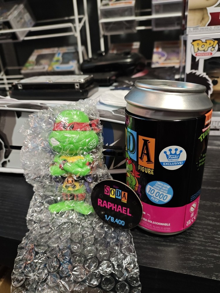 This Funko Vinyl Soda figure features Raphael from the Teenage Mutant Ninja Turtles franchise. This exclusive collectible is part of the TMNT: Soda+Bag Q4 2021 series and is a must-have for any fan. The figure is made of vinyl material and showcases Raphael in a unique pose. It's perfect for collectors and fans alike, with its vaulted status making it a rare find. This Funko figure is an exclusive item from Funko, and is sure to be a hit with anyone who loves the Teenage Mutant Ninja Turtles. Add it to your collection today!