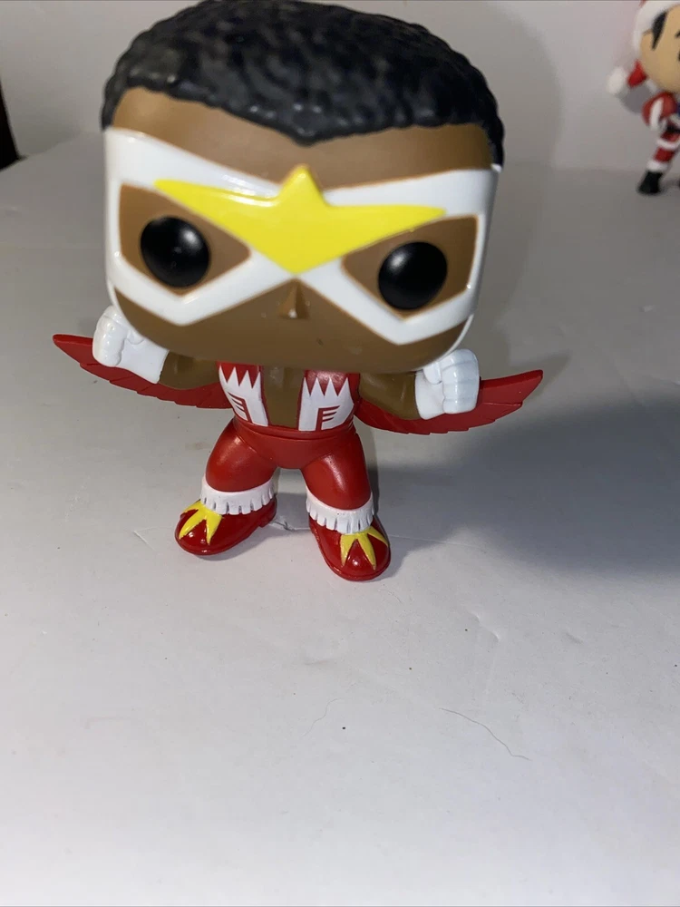 This Funko POP vinyl figure features the character Falcon from the Marvel franchise, with a red and black color scheme and a sleek design. It's a must-have for any collector of Marvel-themed items, especially those interested in the Pop! Vinyl product line. The figure stands at approximately 3.75 inches tall and comes without packaging. This item is an exclusive release from the Common retailer and is part of the Marvel S4 series. It features a vaulted design and is perfect for fans of comics and comic books. The figure is made of high-quality vinyl material and is a great addition to any Marvel collection.