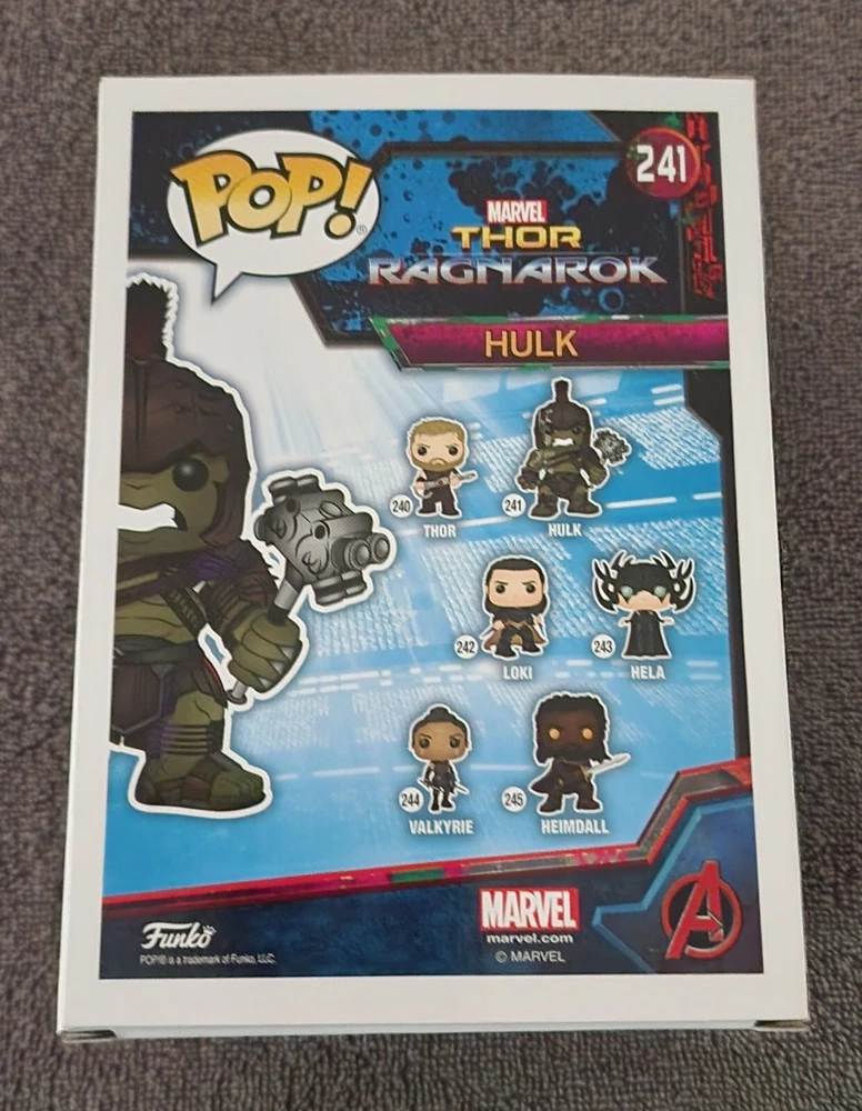 Add the Funko PoP! Marvel Thor Ragnarok HULK Vinyl Figure #241 to your collection today. This 4-inch figure is perfect for fans of the Marvel Cinematic Universe and features the iconic character from the hit movie. The figure comes in its original packaging and is part of the Pop! series from Funko. With its multicolor design and common features, this vinyl figure is a must-have for any collector. It is also a great gift for fans of the Marvel franchise. Don't miss out on the chance to add this exclusive Marvel Collector Corps item to your collection. 100% of this sale benefits a dog rescue organization! Thanks for looking!