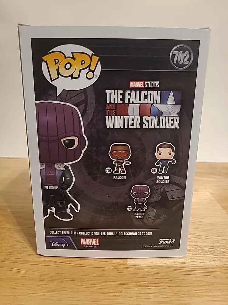 Enhance your Marvel collection with the Funko Pop! Baron Zemo #702 from "The Falcon and the Winter Soldier" series. This vinyl bobblehead features the iconic villain in his intricate costume, as seen in the hit Disney+ show. A must-have for fans, this piece captures the essence of Baron Zemo, down to the chilling detail of his mask. Not just a display-worthy collectible, this model comes with a dedicated protector to keep it pristine. Released in 2020, it's part of the highly sought-after Pop! Vinyl line, and being vaulted adds to its exclusivity. Whether for display or as part of a larger collection, this Funko figure is a standout piece commemorating the thrilling "Captain America: The Winter Soldier" movie and the compelling TV show it inspired.