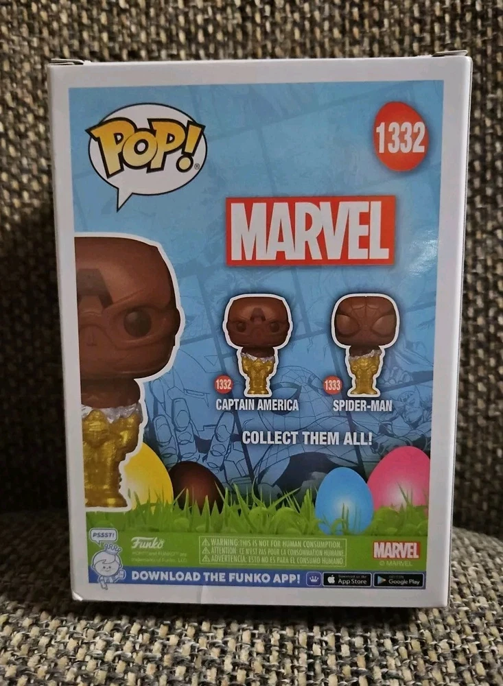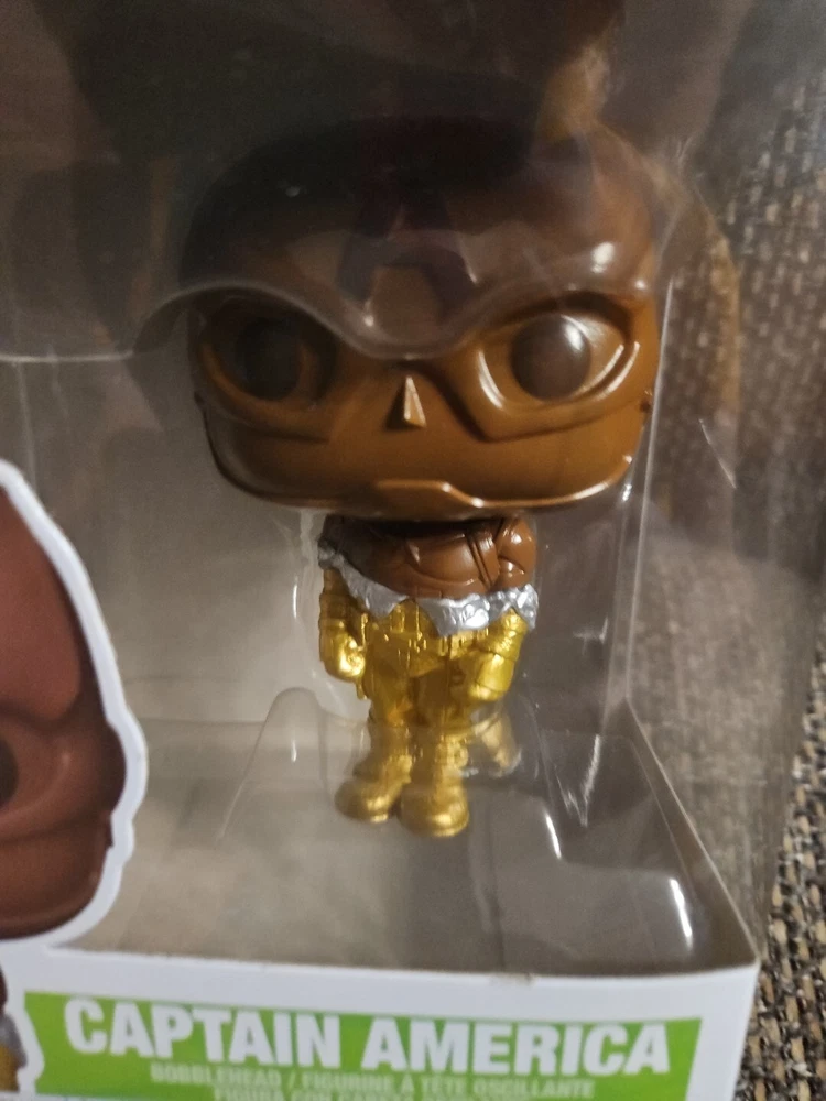 Get your hands on this special Funko Pop! vinyl figure of Captain America from the Easter Chocolate series. This bobble-head is perfect for any Marvel fan and collector, featuring the iconic character in his standard size and multicolor design. The figure stands at 4 inches tall and comes in its original packaging, unopened and ready for display. This exclusive Funko item is part of the Easter 2024 series and is a must-have for any collector. It features Captain America, one of the most beloved characters from the Marvel franchise, and is made of high-quality vinyl material. Don't miss out on the chance to add this speciality series item to your collection.