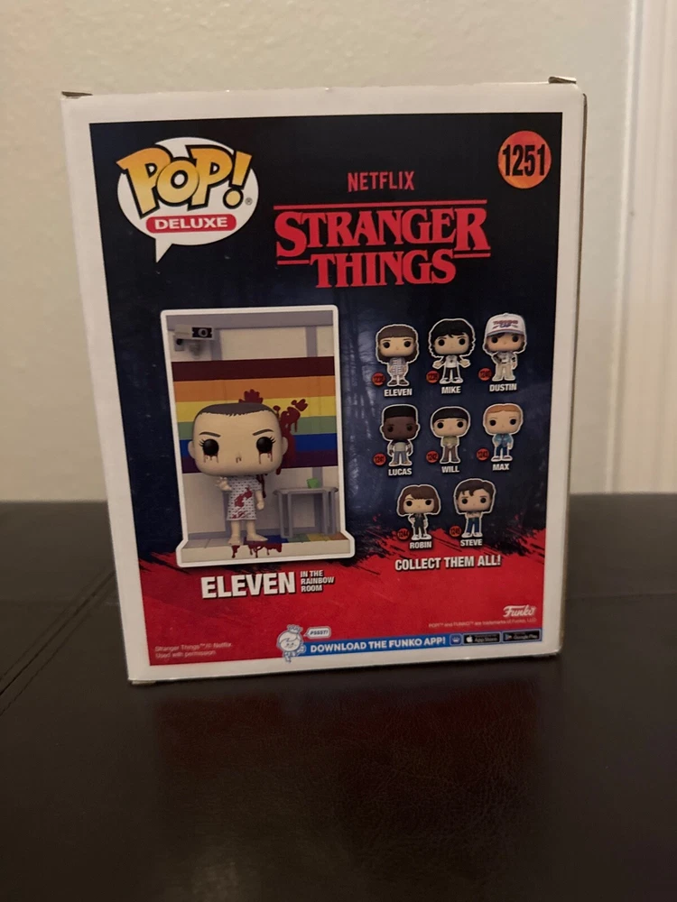 Introducing the Funko Pop! Deluxe #1251 Eleven In The Rainbow Room Vinyl Figure 2022, a must-have for fans of the popular TV show Stranger Things. This beautifully crafted vinyl figure stands at 6 inches tall and features Eleven, one of the show's beloved characters, in a colorful and vibrant rainbow room. The figure is made of high-quality vinyl and comes in its original packaging, unopened and ready to display. This special edition figure is an exclusive item from Target and is part of the Funko Pop! Deluxe collection. Perfect for collectors and fans alike, this figure is a great addition to any collection and is sure to bring joy to anyone who loves the show.