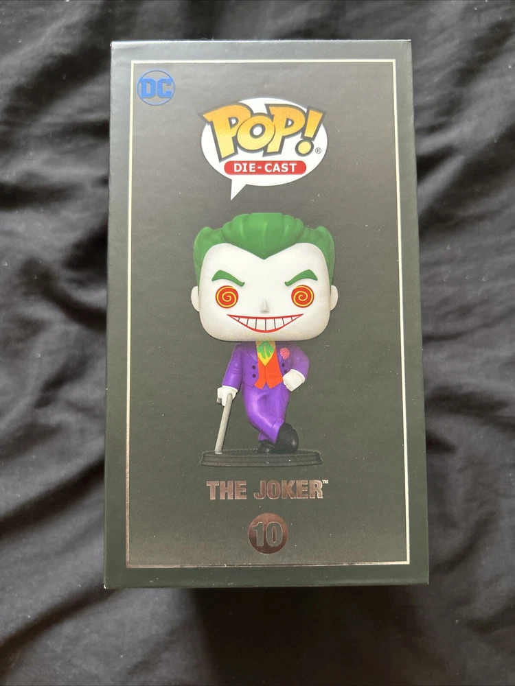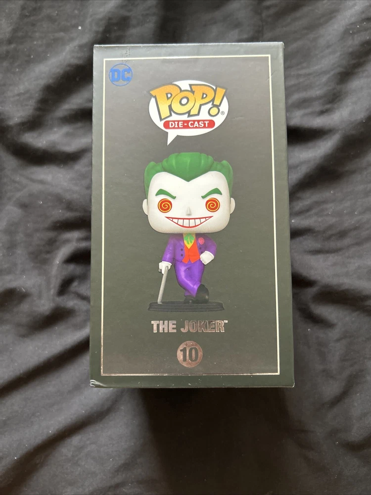 Introducing the Funko Pop! Diecast figure of The Joker from DC Comics 2023 Q3. This exclusive collectible features the iconic character in a die-cast format, perfect for any fan of comics or the DC Universe. The box number for this figure is 10 and it comes from the popular Pop! Diecast collection by Funko. This vinyl figure is a must-have for any collector or enthusiast of The Joker or DC Comics. With its intricate details and high-quality design, it's sure to be a standout addition to any collection. Don't miss out on the chance to own this exclusive Funko Pop! Diecast figure.