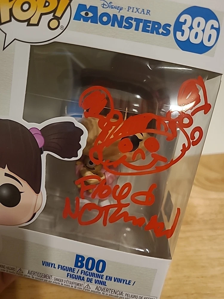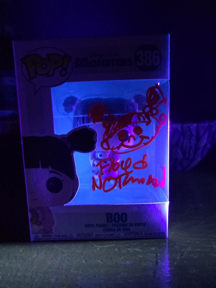 This Funko Pop! vinyl figure of Boo from the Disney/Pixar Monsters franchise is a must-have for any collector. Featuring a hard-signed autograph by Floyd Norman, this rare and vaulted item is a true gem. Also a sketch of Boo by Floyd Norman is included. Floyd Norman is Disney's first African-American animator. The figure is made of high-quality vinyl material and comes with a protector to keep it in pristine condition. The packaging is original and unopened, making it a great addition to any Disney collection. This Funko Pop! figure is part of the Pop! product line and features the character Boo in all her adorable glory. Don't miss out on the chance to own this unique piece of animation history.