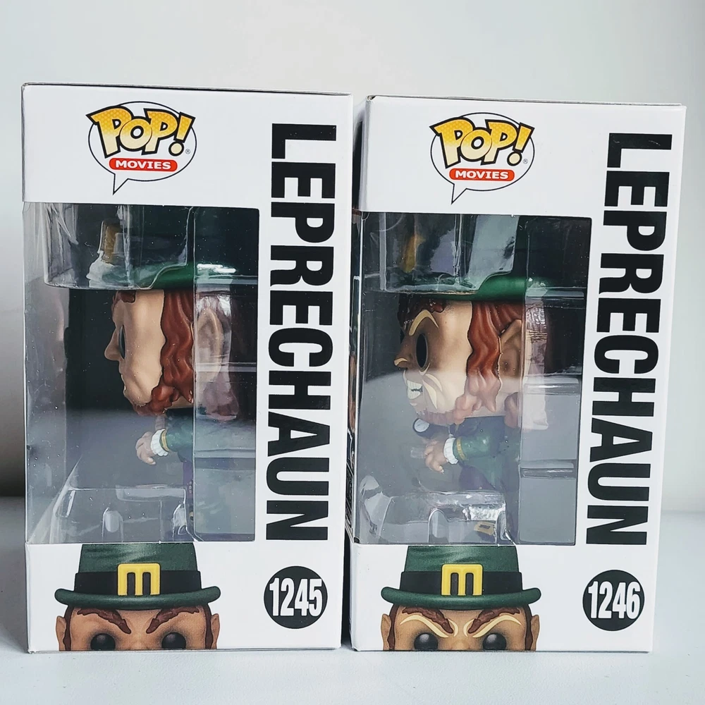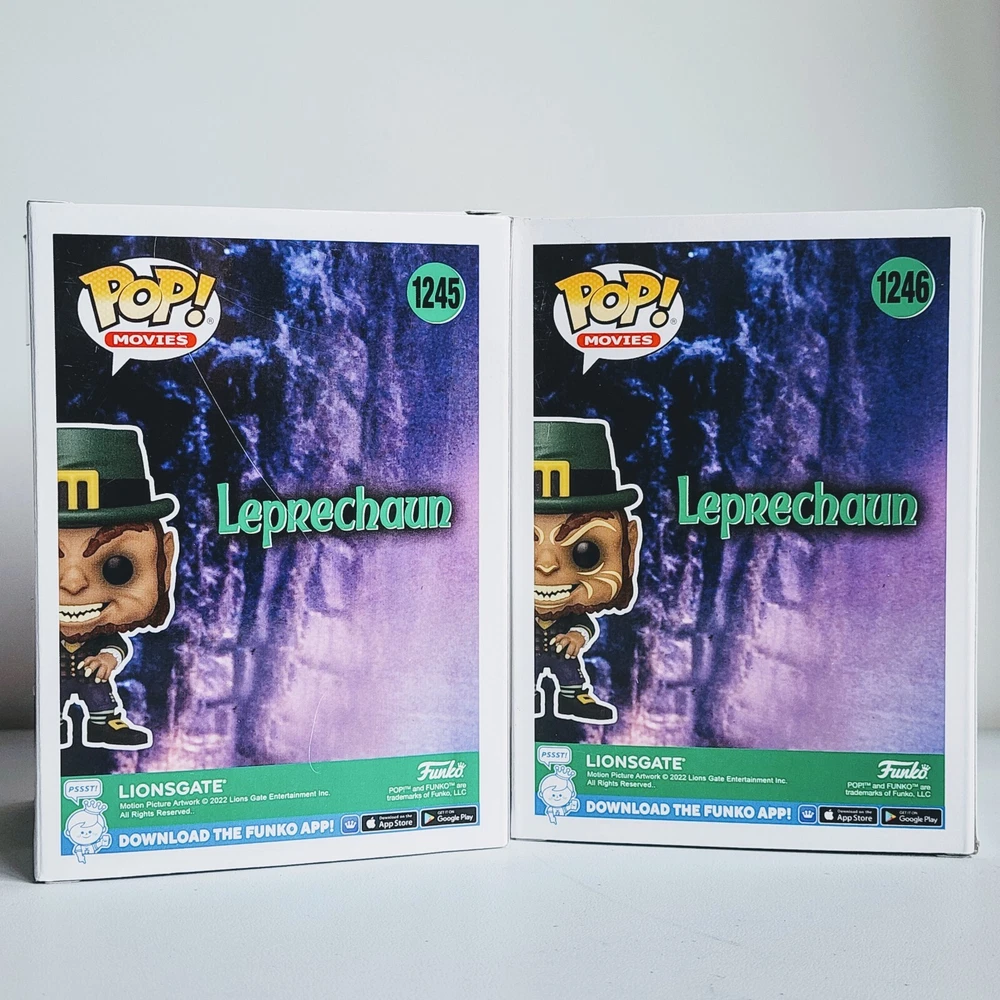 This Funko Pop set features two exclusive Leprechaun figures, #1245 and #1246, from the popular horror movie franchise. Made of vinyl material, these figures are sold in a box that may be damaged. The set is a FYE exclusive, making it a rare find for collectors. The figures are part of the Pop! product line and come with a protector to keep them safe. They also glow in the dark, making them perfect for display in any horror-themed collection. With its unique features and rare status, this set is a must-have for any Leprechaun fan or collector.