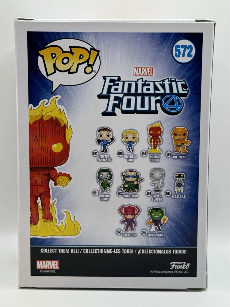 Introducing a fantastic Funko Pop! vinyl figure of Human Torch from Marvel's Fantastic Four series. This exclusive figure, box number 572, is brand new in box and perfect for any comic book collector or fan of the franchise. Made of high-quality vinyl and manufactured in Vietnam, this item is a must-have for pop culture enthusiasts. The figure features an exclusive design and is part of the Pop! product line. It is perfect for boxing fans and collectors of Marvel comics and merchandise. Add this unique piece to your collection today! Item(s) is/are sold as-is, as depicted in photo(s).