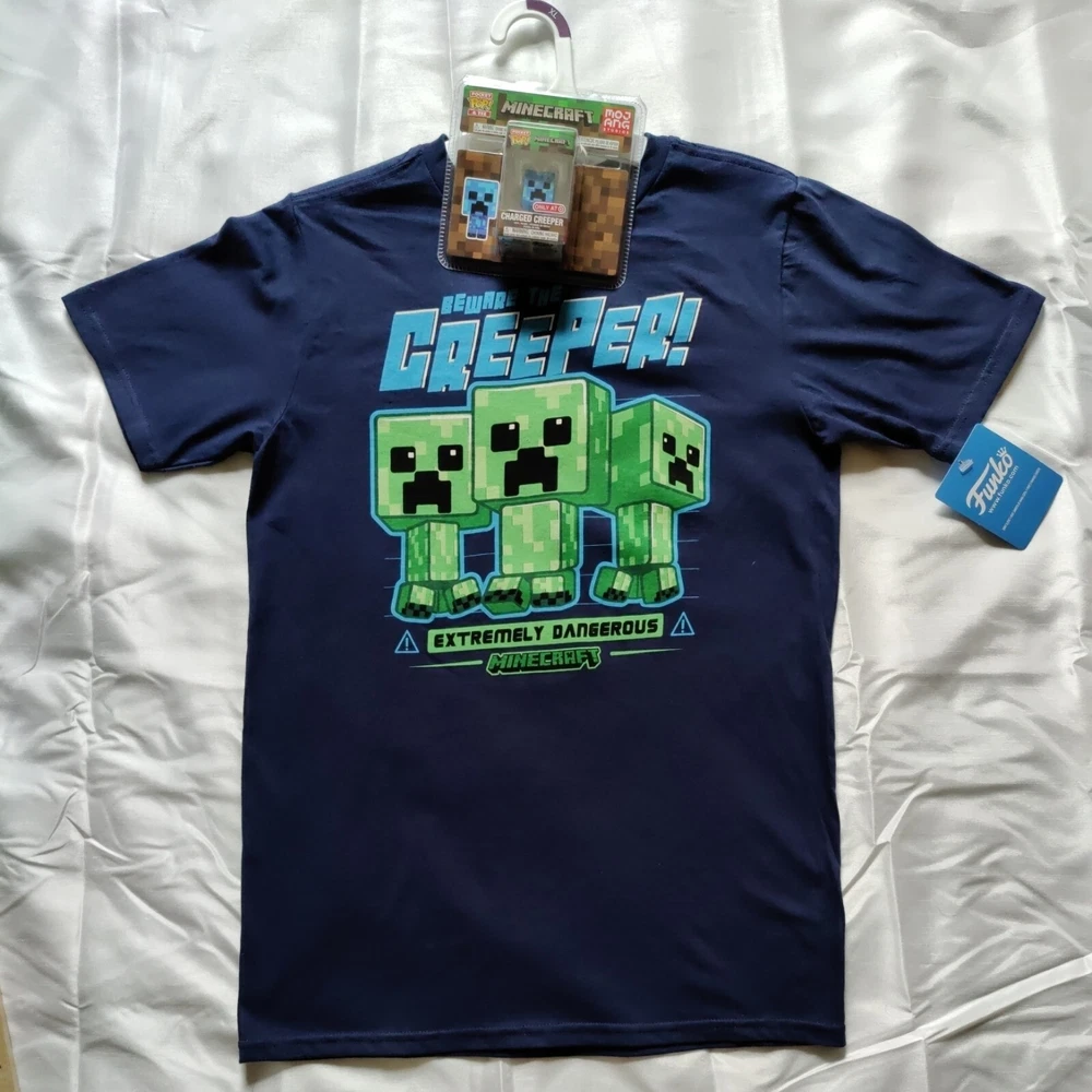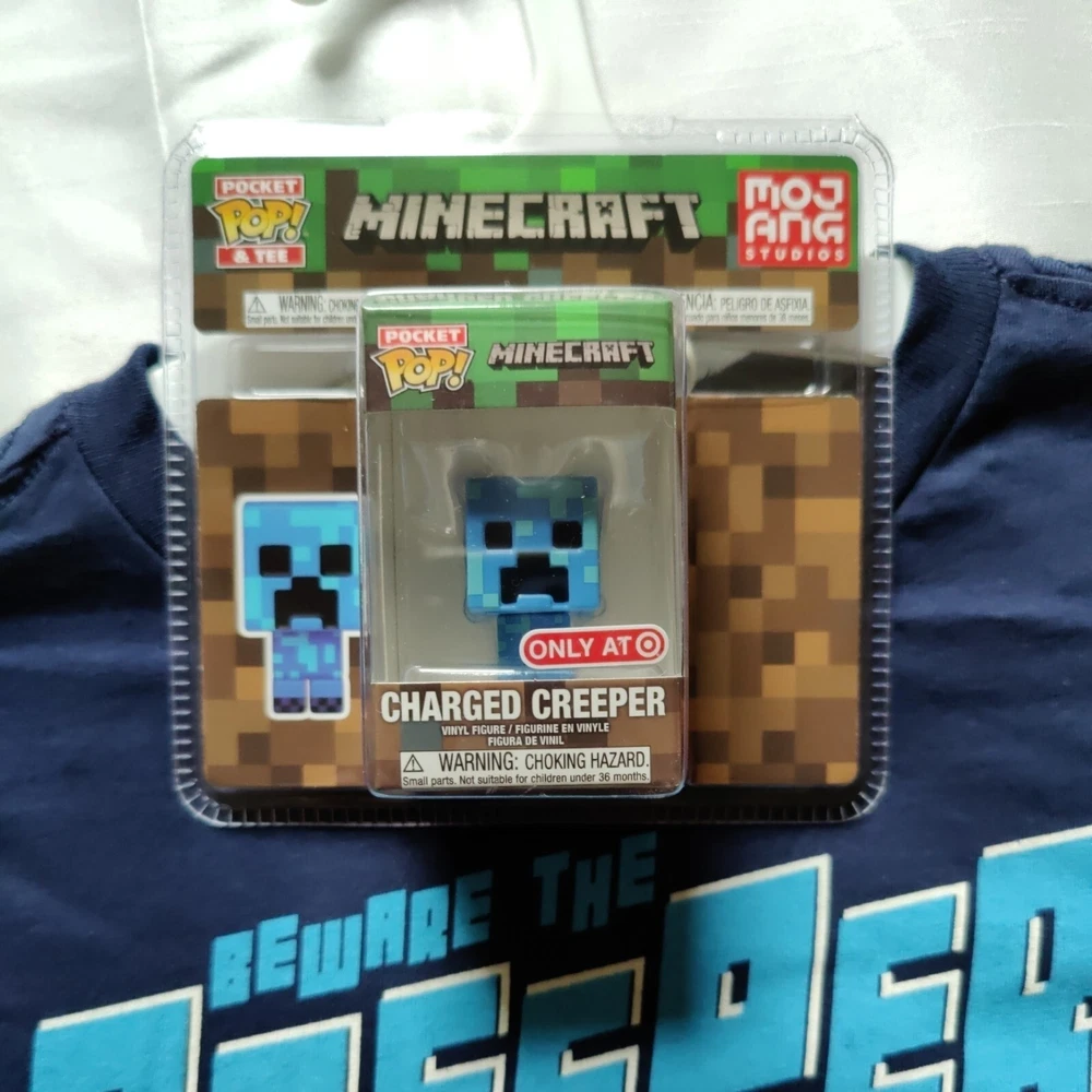 Get your hands on this special edition Funko Pop! Pocket Pop & T-Shirt featuring the beloved Minecraft character, Charged Creeper. This mini figurine and tee are perfect for any fan of the video game franchise, and are made of high-quality vinyl and cotton materials for durability and comfort. The blue color scheme and cute design make this a great addition to any collection or gift for a young Minecraft enthusiast. This Funko Pop! is a Target exclusive and comes in its original packaging, opened for display purposes only. The item is a size Mini and is part of the Funko Pop! collection. The charging of the Creeper character adds an extra element of fun to this unique collectible. Don't miss out on the chance to own this exclusive item from Vietnam.