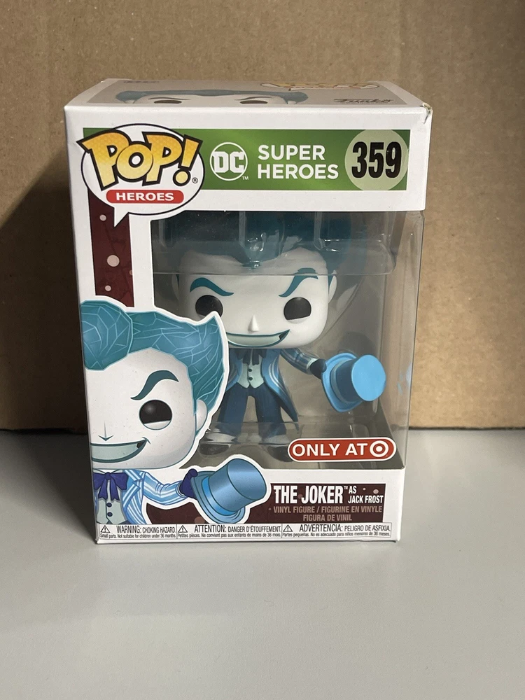 Introducing the Funko Pop The Joker as Jack Frost 359 DC Super Heroes Target Exclusive Figure! This exclusive vinyl figure is a must-have for any DC Universe fan. The figure stands at 4 inches tall and features multicolor details. It comes in its original packaging, unopened and ready to display. This Pop! Vinyl figure is part of the DC Comics Holidays S1 series and is a perfect addition to any collection. The figure is customized with the signature Funko touch and is made of high-quality vinyl material. Don't miss out on the chance to own this exclusive item from Target.