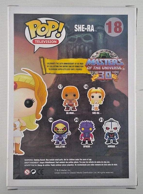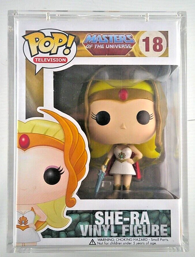 This Funko Pop figure features the iconic She-Ra character from the Masters of the Universe franchise. Made of vinyl material, this Pop! Vinyl model is part of the old series and comes in box number 18. Originally released in 2013, it is a must-have for fans of the Masters of the Universe TV show and animation theme. This Funko Pop! figure is a collectible from the Television collection and comes with features like being Vaulted and With Hard Stack for extra protection. Very minor box damage. The brand, Funko, is well-known for their collectible figures and bobbleheads. Add this She-Ra figure to your collection, as it is sure to impress!