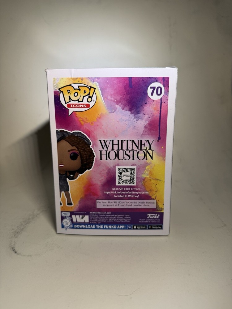 No scratches, no dents, comes with a protective case, it is a diamond exclusive, and a special exclusive Whitney Houston funko pop This Funko Pop! Vinyl figure of Whitney Houston is a must-have for any music lover's collection. With her iconic voice and stunning fashion sense, this figure is sure to be a standout piece in your display. The figure comes in box number 70 and is part of the Icons 2021 Q4 series. Made from high-quality vinyl material, this figure is durable and long-lasting. It also features a vaulted design, making it a rare and sought-after item. The Pop! Vinyl figure is modeled after Whitney Houston's appearance and is part of the Pop! Vinyl product line. Add this figure to your collection today and show off your love for one of the greatest musicians of all time.