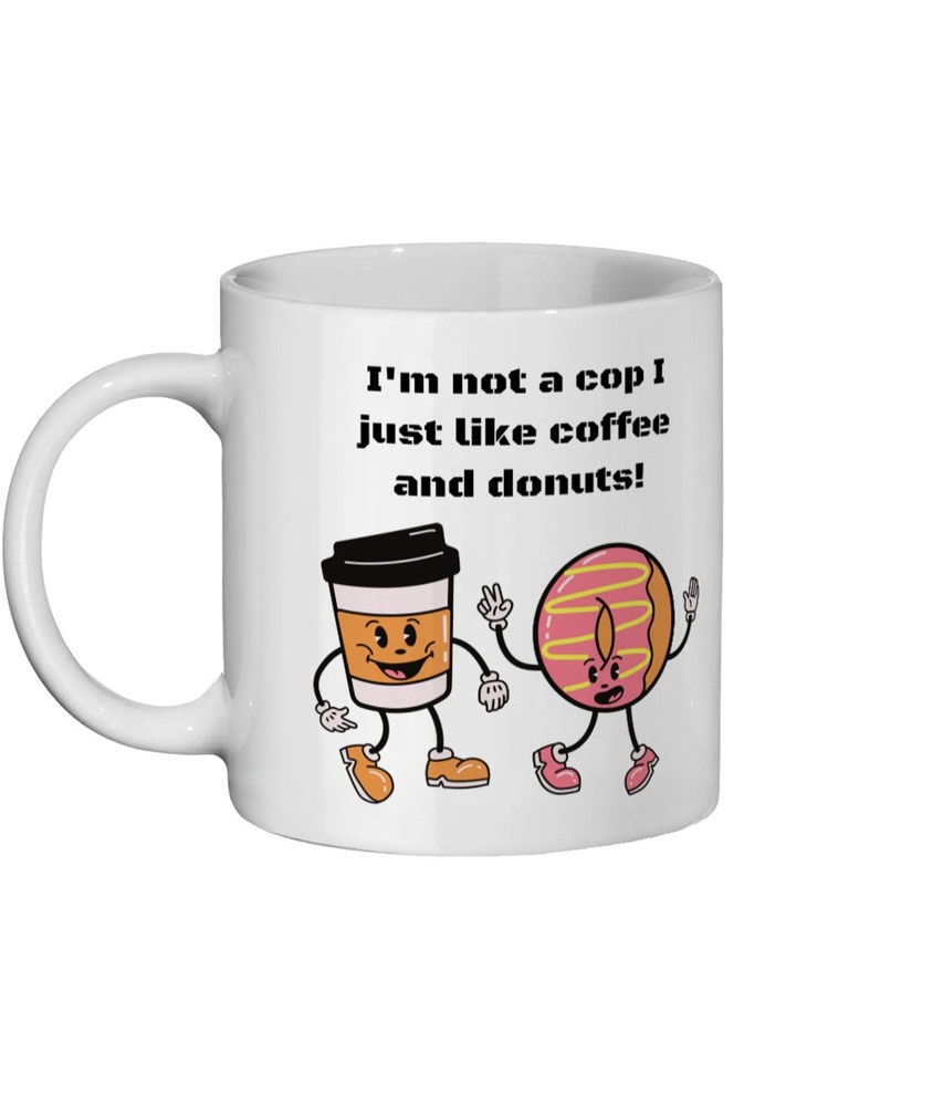Funny Cop Mug Donut Lover Mug Donut Lover Gift Mug For Cop Gift For Cop Funny Police Mug Coffee And Donuts Mug Coffee And Donuts Gift Product Details.. This high quality 11oz. ceramic white mug has a premium hard coat that provides crisp and vibrant color reproduction sure to last for years. Perfect for all hot & cold beverages. The highest quality printing possible is used. It will never fade no matter how many times you wash it. Material: 100% Ceramic. Print both sides. Dishwasher and Microwave Safe. High Gloss + Premium White Finish. Printed in the U.S.A. Personalized & Custom. We support personalized and custom mug to add custom, when placing an order, you can add notes to the "order note" in shipping address section. Also you can contact us directly via message. Shipping Info. Ready to ship in 1 to 2 business days, All products are made-to-order and proudly printed in the United States. Shipped by USPS and DHL, You will receive your order in 5-7 days. Replace & Refund. All products are defective during shipping broken, chipped will be replaced free of charge. You are not satisfied with the product, we will refund 100% money to you. If any other issues arise, please do not hesitate to message, we would be more than happy to assist you.