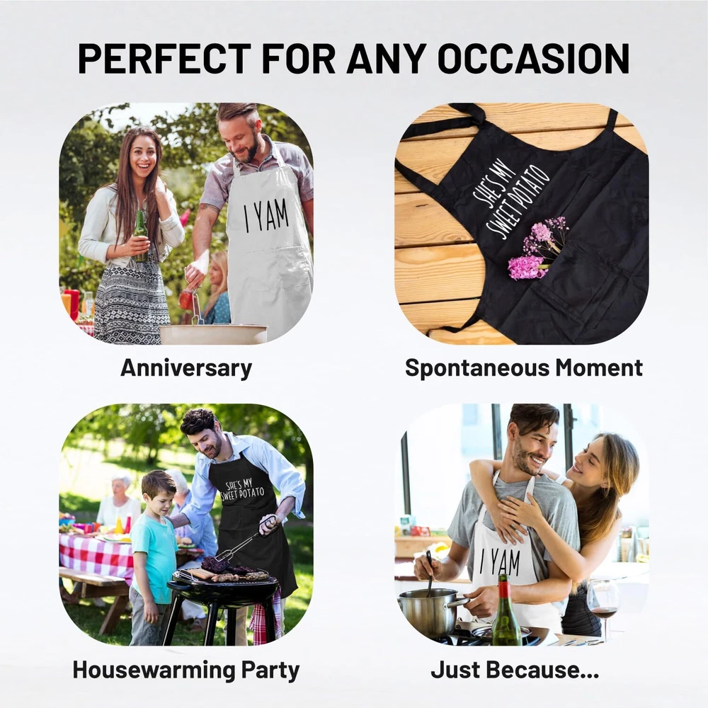Witty Enterprise Funny Couple Aprons - Gift Ideas For Her Him - Wedding, Engagement, Bridal, Birthday; Kitchen Cooking Set The Funniest Gift; Ideal for any celebration such as Birthday, Engagement, Anniversary, or Housewarming Parties! Surprise Your Girl & Loved Ones; Spoil your sweetheart on Birthday, Bridal Shower, Wedding, or Valentines Day! When it comes to couples gift ideas, gifts for couples who have everything or aprons for women, our funny aprons stand alone! Premium Quality Materials; Super soft high quality Polyester Cotton material. A must have while cooking to protect yourself from the kitchen or grill battlefield. One Size Fit All; TWO Large Pockets to hold your phone or recipe book close at hand, or to keep your culinary tools handy. Both aprons include a long waist tie and an adjustable neck tie to fit all body types. Kitchen Accessories; Feature hilarious slogans are sure to make any couples love the aprons. They make the perfect gift for those with a sense of humor and enjoy a good laugh together. We Care; 100% behind the quality of our products and want you to have the best experience possible on your special day. Description Best gift for unique gifts for couples, gifts for a couple, anniversary gift for couple, anniversary gifts for couple, gifts for couples who have everything, unique couples gift ideas, gifts for couples unique, matching aprons for couples. Bridal shower gifts for the bride, wedding gifts for couples, engagement gifts for her, couples christmas gifts, wedding shower gifts, and anniversary. Apron for happy couples and perfect couples gifts unique apron design, best wishes to happiness the best gift for happy couples for different occasions. SHIPPING Domestic Buyers - We ship within 3 business days of payment, usually sooner - We offer FREE shipping on all orders! - We only ship to the lower 48 states, no APO/FPO addresses or PO Boxes allowed - We have confidence in our products, but if you are not fully satisfied please contact us within 30 days of purchase and you will get full refund. International buyers – please note: Import duties, taxes, and charges aren't included in the item price or postage cost. These charges are the buyer's responsibility. - Please check with your country's customs office to determine what these additional costs will be prior to bidding or buying. Return Policy - This product comes with 30-Days Money Back Guarantee. - If you receive an item and it doesn't work properly or you don't like it because of any reason at all, - we have a 100% refund/return policy. We will ship you a new item or refund your money for the full sale amount. - For all returned products, buyers MUST contact us for the returning address. * Order Cancellation Policy ** You can return a product for up to 30 days from the date you purchased it. 1. The seller reserves the right to cancel the special case only due to eBay cancellation fee. 2. The decision of seller is the final. 3. The seller will respond to the cancellation request within 2 business days. Please wait for the result of cancellation. 4. In case the cancellation is not completed by some reasons, the buyer can follow the options below to get the refund. 4.1 The buyer can reject the item when it arrives. 4.2 The buyer can send the item back to the seller within 30 days If the buyer receives item (USA Shipment ONLY). The seller will provide the FREE return label to the buyer when the buyer opens " Return Item" case on eBay by using the reason as "Change my mind" ONLY. 5. When buyer has placed the order. The order will be processed and completed by automatic warehouse system within 5 minutes. In case that buyer sends the cancellation request after 5 minutes of placing the order, the request will be rejected. **Sending direct message to cancel the order is not allowed for every case.* Return Policy For the return case - If buyer would like to return the items for refund or replacement, please CONTACT SELLER to receive the free return label from seller. The refund or replacement will be processed with the tracking number of return label which is provided by seller only. The other ways of return which are not approved by seller will not be processed for the refund or replacement.