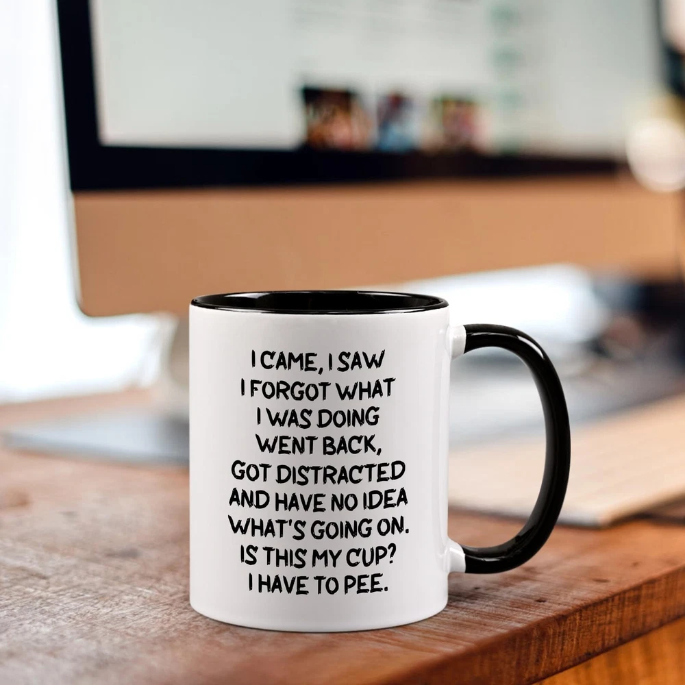 Cabtnca Gifts for Elderly Women Men, Elderly Gifts, Funny Mug for the Elderly, Senior Citizen Gifts, Old People Gifts, Christmas Birthday Gifts for Senior Women Men Old People, 11 Oz Product Details Color: White/Black Brand: Cabtnca MPN: CC1225-BH UPC: Does not apply EAN: Does not apply Brand: Cabtnca Color: White/Black Special Feature: Manual Style: Fine Theme: Holiday Brand: Cabtnca Color: White/Black Special Feature: Manual Style: Fine Theme: Holiday Occasion: Christmas Included Components: Mugs Unit Count: 1.0 Count Product Dimensions: 3.1"W x 3.1"H Number of Items: 1 Item Weight: 13.7 ounces Item model number: CC1225-BH Date First Available: September 12, 2024 FUNNY GIFTS FOR ELDERLY MEN: Embrace the wisdom of age with every sip! The funny mugs are great gifts for the young at heart, or just the forgetful elderly. Whether celebrating a birthday, retirement, Christmas, or any other important occasion, this mug is guaranteed to bring joy and laughter HIGH-QUALITY CERAMIC COFFEE MUG: The funny coffee mug is made from high quality food grade ceramic fired at high temperature, so they are safe and odorless. The cups can hold up to 11 ounces and can hold any hot or cold drink, including tea, beer, or any other beverage they want DOUBLE-SIDED PRINT: The elderly gifts are printed on both sides with the words " I CAME, I SAW, I FORGOT WHAT I WAS DOING" . The text is clear and there is no need to worry about the printing fading, cracking or peeling Dishwasher and Microwave Safe: The senior citizen gifts are made of high quality ceramic and safety ink, which are very safe and environmentally friendly. You can wash it in the dishwasher, which is very convenient and hygienic. And you can also be safely heated using microwaves for coffee or tea THOUGHTFUL DESIGN: Unlike ordinary containers, these old people gifts focus on human design. The cup has an ergonomic C-shaped handle that makes it comfortable to hold. The bottom of the cup has a non-slip design, which is not easy to slip
