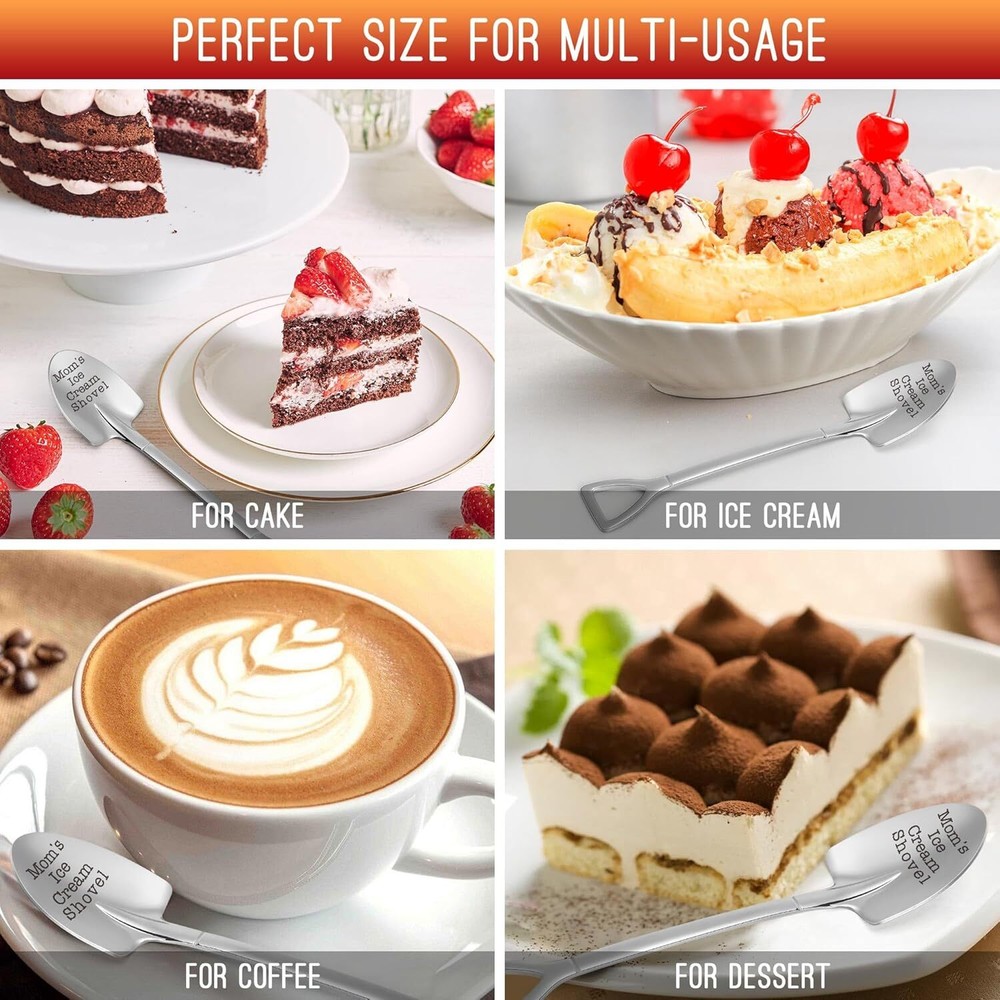 Funny Mothers Day Mama Gifts for Mom Birthday Idea Mother in Law Mommy Presents, from Daughter Son, Small Cute Stuff Things Mom's Ice Cream Shovel Scoop Item Description Mom's Ice Cream Spoon - It's a lovely but practical gift for ice cream lovers; engraved "Mom's Ice Cream Shovel" will make a hit for your mom's birthday, mothers day, christmas stocking stuffers, etc Mother's Day For Moms From Daughter - A practical mom spoon will be the perfect mothers day presents for your best mom, bonus mom, mother in law, mommy, etc; Ideal for mom, bad moms, mommy, grandma's mothers day Gifts For Mom Who Has Everything - this mom's ice cream shovel will be a special womens thoughtful gift for your best mom, ideal gifts for women birthday; It's a good reminder that you love her while she uses this spoon Material - This mom's ice cream spoon is made of 304 stainless steel material won't rust and deform, smooth surface for safe healthy use; The mirror polished sppon will keeps its glossiness for a long time use; It's dishwasher safe Size And Weight - It measures about 6.1 inches, and the weight is about 1.0 oz; Smooth and textured grip is comfortable and safe use Multi-purpose Usage - Suitable for eating ice cream, spread peanut butter, stir coffee, cake, dinner, etc; The multi-purpose spoon with engraved interesting words will bring you a good mood when you use it every time Perfect for Every Occasion - A great gift choice for mom's birthday, Mothers day, valentine's day, thanksgiving, Christmas, wedding, anniversary, retirement, etc; A good way to show your appreciation and love for her › See more product details Hey, are you looking a funny but special gift for your best dad who loves ice cream everyday? This Dad's Ice Cream Shovel spoon engraved the warming message will be a perfect choice for your dad, no matter on Christmas, Birthday, Fathers Day, Valentines Day, Retirement, Thanksgiving, or other any holidays. Believe your dad will feel your love the first time he received this Dad's Ice Cream Shovel spoon. Perfect gift ideas for dad, daddy, father, father in law, etc., on birthday, christmas, thanksgiving, fathers day, retirement, valentines day, etc. It's a lovely but practical gift for ice cream lovers. Every day is a good day, we maybe need a simple but meaningful gift to celebrate every moment we spent with our family, friends, or colleague. Maybe it's an ice cream shovel spoon, a coffee mug, a lovely bracelet, a whiskey glass set, a BBQ tray gift set, or an ornament for decoration, each gift is infused with our love and concentrated attention. The smile when you receive the gift is the greatest affirmation and recognition for us, and thank you for liking our gifts. We will continue to work hard further, hope this small gift passes love with love. More dad gifts for birthday, valentines day, fathers day, Christmas, Thanksgiving, retirement, anniversary, grandparents day, etc. Payment Shipping . Return