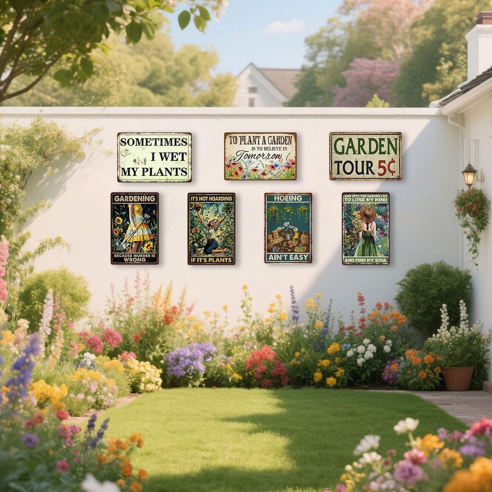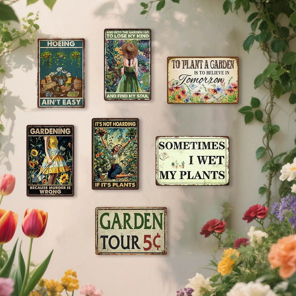 Funny Metal Garden Signs Outdoor Decor 12x8 Inch - Vintage Garden Tin Sign For Outside, Unique Gardening Gifts for Women , Greenhouse Decor & Yard Decorations Outdoor Patio Signs for Plant Lovers Funny Metal Garden Signs Outdoor Decor – This funny metal garden sign is made of tin metal that stands up to outdoor elements, so it stays in good shape for long-term use as outdoor decor. The 12x8 inch size is just right: not too big to overwhelm small garden spots, but big enough to stand out as a vintage garden tin sign that catches the eye. Multi-Scene Outdoor Decor Use – It’s not just for gardens: this sign works great as greenhouse decor to add character to your plant-growing area, doubles as outdoor patio signs for your seating space, and fits right in with yard decorations to liven up your lawn. No matter if you hang it by flower beds or near patio furniture, it boosts the look of any outside area. Unique Gardening Gift for Women & Plant Lovers – If you’re looking for a thoughtful present for someone who loves gardening, this vintage garden tin sign is a great pick. It’s a unique gardening gift for women that mixes charm and practicality, and plant lovers will appreciate how it adds personality to their green spaces—perfect for birthdays, housewarmings, or garden-themed gatherings. Vintage Garden Tin Sign For Outside – this funny metal garden sign resists fading, rusting, and wear from sun, rain, or wind—no frequent maintenance needed. Hanging it is simple too: just use nails, hooks, or string to mount it on fences, walls, or garden posts, turning it into instant outdoor decor without extra trouble. Vintage Style with a Funny Touch – More than just a decor piece, this sign has a playful yet timeless look. The vintage garden tin sign aesthetic pairs with a funny design that brings smiles to your outdoor space, letting you show off your love for gardening. It’s ideal for anyone who wants to add warmth and personality to their yard, patio, or greenhouse.