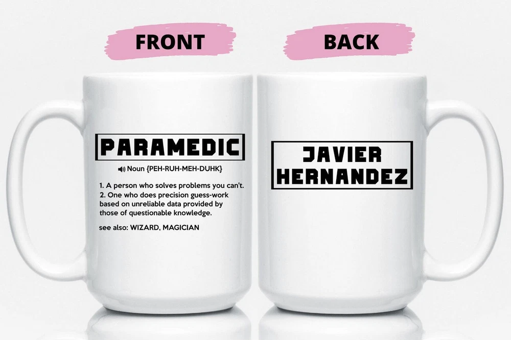 Funny Paramedic Gift Mug For Men And Women Paramedic Mug Birthday Gift Product Details.. This high quality 11oz. ceramic white mug has a premium hard coat that provides crisp and vibrant color reproduction sure to last for years. Perfect for all hot & cold beverages. The highest quality printing possible is used. It will never fade no matter how many times you wash it. Material: 100% Ceramic. Print both sides. Dishwasher and Microwave Safe. High Gloss + Premium White Finish. Printed in the U.S.A. Personalized & Custom. We support personalized and custom mug to add custom, when placing an order, you can add notes to the "order note" in shipping address section. Also you can contact us directly via message. Shipping Info. Ready to ship in 1 to 2 business days, All products are made-to-order and proudly printed in the United States. Shipped by USPS and DHL, You will receive your order in 5-7 days. Replace & Refund. All products are defective during shipping broken, chipped will be replaced free of charge. You are not satisfied with the product, we will refund 100% money to you. If any other issues arise, please do not hesitate to message, we would be more than happy to assist you.