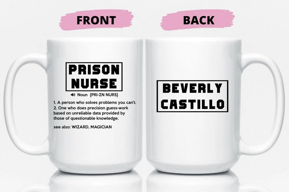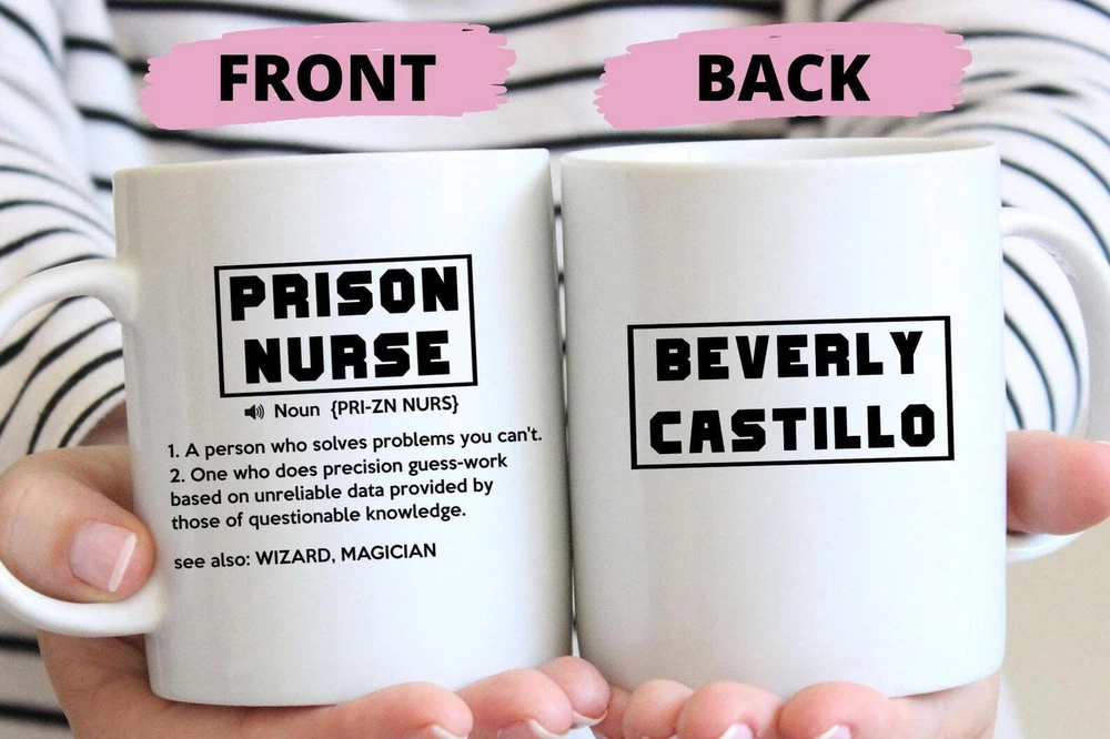 Funny Prison Nurse Gift For Men And Women Prison Nurse Mug Nurse Gift Idea For Product Details.. This high quality 11oz. ceramic white mug has a premium hard coat that provides crisp and vibrant color reproduction sure to last for years. Perfect for all hot & cold beverages. The highest quality printing possible is used. It will never fade no matter how many times you wash it. Material: 100% Ceramic. Print both sides. Dishwasher and Microwave Safe. High Gloss + Premium White Finish. Printed in the U.S.A. Personalized & Custom. We support personalized and custom mug to add custom, when placing an order, you can add notes to the "order note" in shipping address section. Also you can contact us directly via message. Shipping Info. Ready to ship in 1 to 2 business days, All products are made-to-order and proudly printed in the United States. Shipped by USPS and DHL, You will receive your order in 5-7 days. Replace & Refund. All products are defective during shipping broken, chipped will be replaced free of charge. You are not satisfied with the product, we will refund 100% money to you. If any other issues arise, please do not hesitate to message, we would be more than happy to assist you.