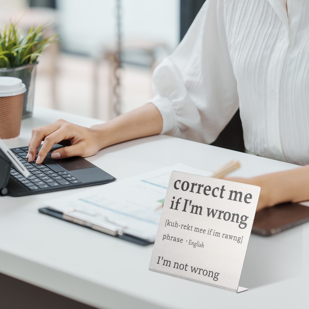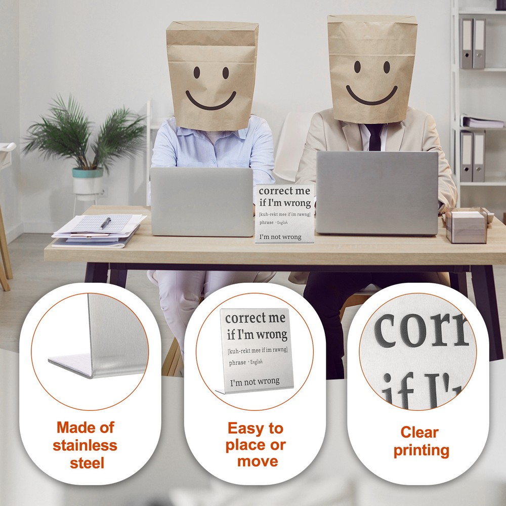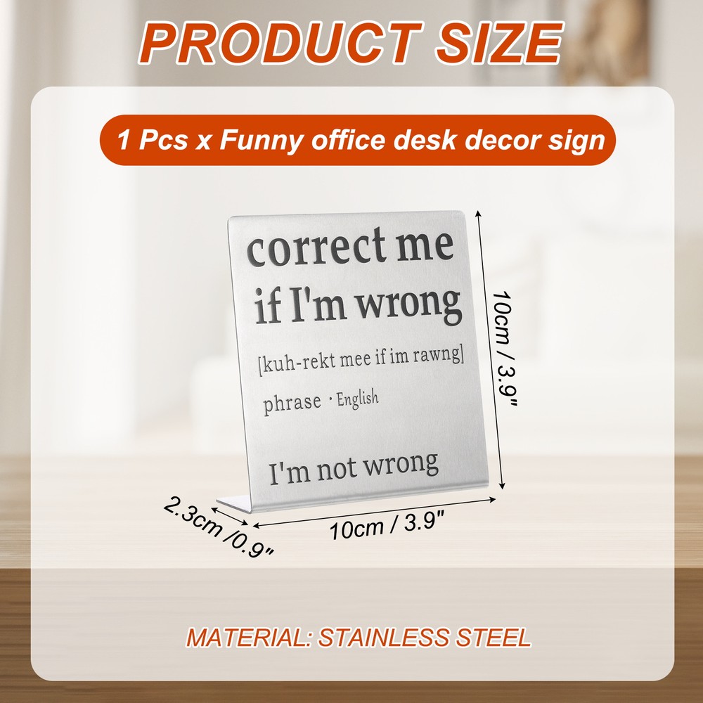 Document MULTIPURPOSE - Funny desk decoration signs use humorous sentences to inspire smile and liven up the office atmosphere, bringing personality and fun to any workspace. Perfect for birthdays, events, home, and office decorationWHAT YOU GET - 1 x Funny office desk decor sign. And their sizes are: 10cm x 2.3cm x 10cm / 3.9inch x 0.9inch x 3.9inch(L*W*H); Material: Stainless steel; Color: Silver; Style: correct me if I'm wrongRELIABLE MATERIAL - The funny desk decoration sign is made of stainless steel, which is strong and not easy to deform, waterproof and rust-proof, and durable. It is small in size and easy to place or move on the desk, and it does not take up too much space. The interesting title content has both decorative effects and brings fun.WIDELY USED - Funny office desk decor sign has a wide range of applications. It can be placed on the desk to decorate and bring fun to busy coworkers. It can be placed on bookshelves and wall cabinets to decorate the corners of the home. It can also be given to friends, colleague as interesting gifts.KINDLY NOTE - Please pay attention to the style and size of the title before purchasing Funny Desk Sign, Funny Nameplate, Silver (correct Me If I'm Wrong) MULTIPURPOSE - Funny desk decoration signs use humorous sentences to inspire smile and liven up the office atmosphere, bringing personality and fun to any workspace. Perfect for birthdays, events, home, and office decoration WHAT YOU GET - 1 x Funny office desk decor sign. And their sizes are: 10cm x 2.3cm x 10cm / 3.9inch x 0.9inch x 3.9inch(L*W*H); Material: Stainless steel; Color: Silver; Style: correct me if I'm wrong RELIABLE MATERIAL - The funny desk decoration sign is made of stainless steel, which is strong and not easy to deform, waterproof and rust-proof, and durable. It is small in size and easy to place or move on the desk, and it does not take up too much space. The interesting title content has both decorative effects and brings fun. WIDELY USED - Funny office desk decor sign has a wide range of applications. It can be placed on the desk to decorate and bring fun to busy coworkers. It can be placed on bookshelves and wall cabinets to decorate the corners of the home. It can also be given to friends, colleague as interesting gifts. KINDLY NOTE - Please pay attention to the style and size of the title before purchasing Hot Item Payment 1.We accept eBay payment . 2.Payment must be received within 7 business days of auction closing. Shipping 1.We ship to your eBay or Paypal address. Please make sure your eBay and Paypal address is correct before you pay. 2.Items will be shipped within 1-3 business day when we received payment. 3.Delivery time depends on destination and other factors. Description Policy Funny Desk Sign, Funny Nameplate, Silver (correct Me If I'm Wrong) MULTIPURPOSE - Funny desk decoration signs use humorous sentences to inspire smile and liven up the office atmosphere, bringing personality and fun to any workspace. Perfect for birthdays, events, home, and office decoration WHAT YOU GET - 1 x Funny office desk decor sign. And their sizes are: 10cm x 2.3cm x 10cm / 3.9inch x 0.9inch x 3.9inch(L*W*H); Material: Stainless steel; Color: Silver; Style: correct me if I'm wrong RELIABLE MATERIAL - The funny desk decoration sign is made of stainless steel, which is strong and not easy to deform, waterproof and rust-proof, and durable. It is small in size and easy to place or move on the desk, and it does not take up too much space. The interesting title content has both decorative effects and brings fun. WIDELY USED - Funny office desk decor sign has a wide range of applications. It can be placed on the desk to decorate and bring fun to busy coworkers. It can be placed on bookshelves and wall cabinets to decorate the corners of the home. It can also be given to friends, colleague as interesting gifts. KINDLY NOTE - Please pay attention to the style and size of the title before purchasing Hot Item Payment 1.We accept eBay payment . 2.Payment must be received within 7 business days of auction closing. Shipping 1.We ship to your eBay or Paypal address. Please make sure your eBay and Paypal address is correct before you pay. 2.Items will be shipped within 1-3 business day when we received payment. 3.Delivery time depends on destination and other factors.