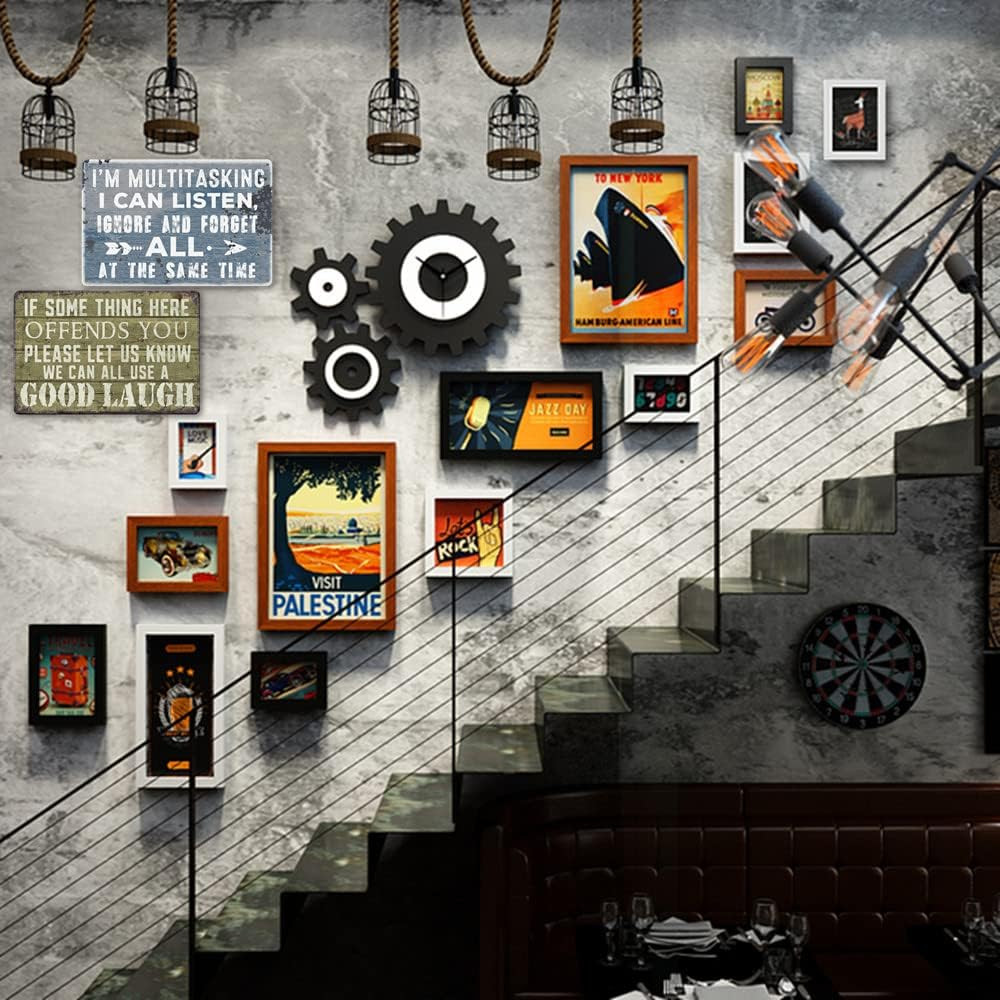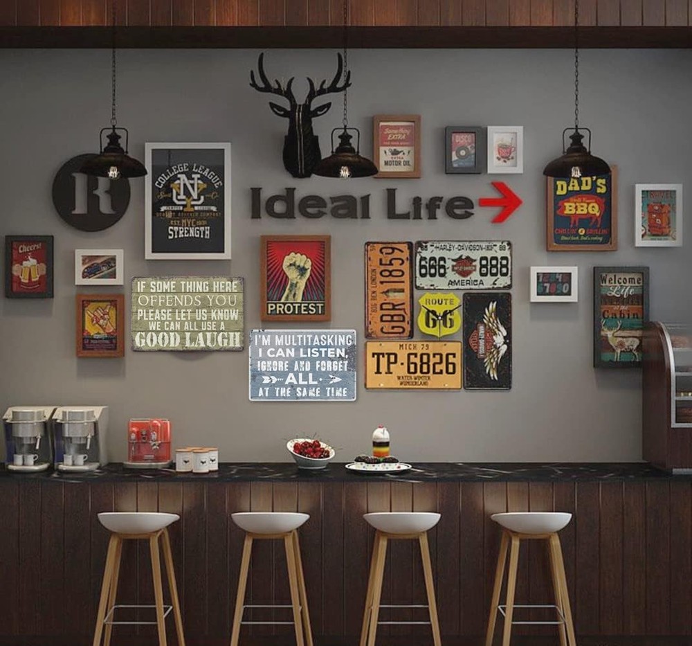Funny Bar Sign Vintage Metal Tin Garage Signs Man Cave Wall Decor light blue Product Details Mounting Type: Wall Mount Product Dimensions: 12"L x 8"W Shape: Rectangular Style: Vintage Pre-printed: I'm sorry, I can't read Included Components: 2 Metal Signs Item Weight: 12 ounces Manufacturer: wlegebr Item model number: wlegebr008 Batteries required: No Color: light blue Brand: wlegebr Material: Metal Theme: Vintage Recommended Uses For Product: Office FUNNY METAL SIGNS SIZE: 8 x 12 inches (20cmx30cm) You will receive 2 funny signs ,and a humorous design that will bring laughter to you and your friends and loved ones! APPLICABLE SCENE:these funny metal tin signs are suitable for garage ,bar ,home bar,beer wall accessories etc. MATERIAL: these metal tin sign for garage and bar is brand new, The metal painting has a rusty effect, it is printed, not really rusted.made of heavy duty metal, with higher hardness and less bendingHigh quality and environmental protection does not rust ,no fading and can be used for many years. EASY TO INSTALLl: These funny metal signs come with four screw holes and can be installed with double-sided foam tape, command strips or nails for easy hanging THOUGHTFUL SERVICE: If you have any questions about these funny metal signs , please feel free to contact us.