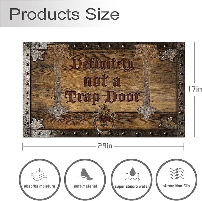 Definitely Not A Trap Door Mat Welcome Mat for Front Door Funny Door Mats Out Dimensions: Our mats are approximately 17x29 inches and approximately 0.25 inches thick. Material :100% Polyester Fiber (Polyester), Bottom Non-Woven Fabric Dot Plastic,Non-slip backing (made of high-quality rubber). the doormat's surface effectively scrapes away dirt, mud, and debris to keep your floors clean. The non-slip rubber backing prevents moisture leaks and keeps the mat securely in place.You can also use it as an ornament. Funny Doormat: Add some personality and humour to your front door! Greet guests with humor from the moment they arrive at your doorstep by placing this “definitely not a trap door” doormat out front. This mat is a perfect gift for your anti social sister, funny old room mate, Or as porch decoration for spring, summer, fall and winter. Suitable Occasion: This funny doormat is not just for your front or back door-it’s also perfect for the bedroom, Living room, or office. It makes a great festival gift for your friends and neighbors to decorate their homes with. Easy To Clean: Keep your doormat looking clean and new with ease. Simply spray it off with a hose or use a damp cloth or sponge with mild detergent to clean off any dirt or yard debris. machine washable. Special Note For The Convenience Of Logistics And Transportation, The Mats Will Be Folded And Shipped. Customers May Have Creases When They Receive It. After Leaving For 3-5 Hours, The Creases Will Disappear. Please Rest Assured To Buy! Shipping We offer FREE shipping on all orders! We ship within Three business days of payment, usually sooner. We use a selection of shipping services such as UPS, FedEx, USPS etc. We only ship to the lower 48 states, no APO/FPO addresses or PO Boxes allowed. Local pickups and combined shipping options are not provided at this time. Return You can return a product for up to 30 days from the date you purchased it. Any product you return must be in the same condition you received it and in the original packaging. Please keep the receipt. Payment We accept payment by any of the following methods: PayPal Please pay as soon as possible after winning an auction, as that will allow us to post your item to you sooner! Feedback Customer satisfaction is very important to us. If you have any problem with your order, please contact us and we will do our best to make you satisfied. Contact Us If you have any queries, please contact us via ebay. We usually respond within 24 hours on weekdays. Please visit our eBay store to check out other items for sale! Thank you for shopping at our store.