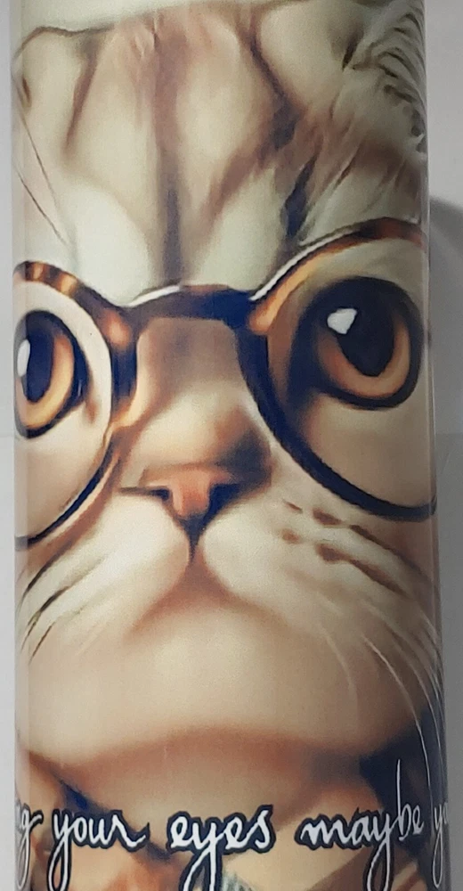This stainless-steel tumbler is perfect for any cat lover. With a 20oz capacity, it keeps your hot or cold beverages at the perfect temperature for up to 6 and 8 hours, respectively. The tumbler comes with a slide lock, drink-through lid, and stainless steel straw, making it easy to sip on your favorite beverage. The multicolor cat pattern adds a touch of fun to your day, while the handcrafted design ensures that each tumbler is unique. This tumbler is great for teens, adults, and kids, and is perfect for use at home or on-the-go. It is recommended to hand wash only to keep your tumbler clean and shiny. Quote on tumbler: keep rolling your eyes maybe you'll find a brain back there.